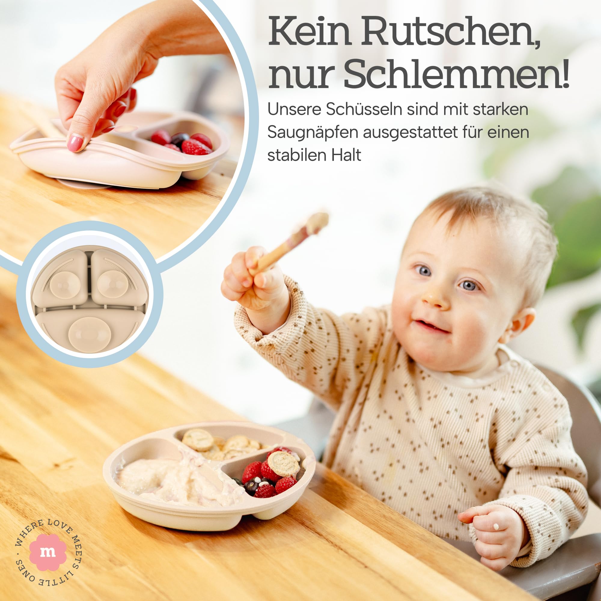 Mama, Papa - Schluss mit herumfliegenden Tellern! Dieser süße Silikon-Teller mit Katzenmotiv bleibt einfach da, wo er hingehört. Der Saugnapf unten hält bombenfest, selbst wenn dein Kleines mal wieder wild wird. Drei Fächer trennen das Essen - keine Gemische mehr von Hauptspeise, Beilage und Nachtisch. Aus 100% lebensmittelechtem Silikon, BPA-frei und hitzebeständig von -20°C bis 200°C. Kann also in Mikrowelle und Gefrierschrank. Die gewölbten Ränder machen das Schöpfen supereinfach - weniger Kleckern! Leicht zu reinigen, einfach unter Wasser abspülen. In verschiedenen Farben erhältlich - dein Kind wird den süßen Katzenteller lieben. Perfekt für die Beikost-Phase oder wenn die Kleinen selbst essen lernen. Macht das Essen für alle entspannter - versprochen!
