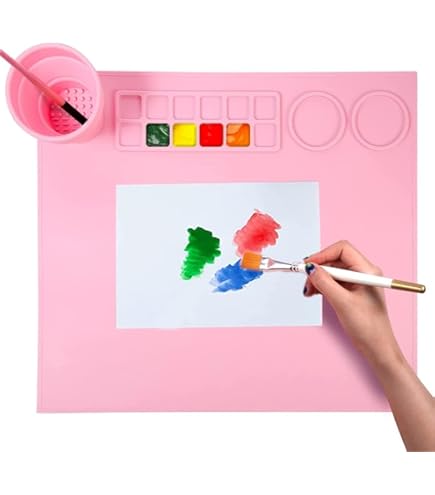 Oh wow, diese Silikon-Malmatte ist ja perfekt für kleine Künstler! 50x40 cm groß - also richtig viel Platz zum Malen, Kneten und Basteln. Aus 100% hochwertigem Silikon - total langlebig und vor allem sicher für Kinder. Rutschfeste Oberfläche - die Matte bleibt da, wo sie sein soll! Im Lieferumfang ist alles dabei: Ein abnehmbarer, faltbarer Becher für Wasser, drei Pinselhalter, sechzehn Farbgruben und zwei Farbpaletten. Also wirklich ein All-in-One-Set! Reinigung? Super einfach - einfach mit feuchtem Tuch abwischen oder unter Wasser abspülen. Kein lästiges Saubermachen mehr! Egal ob Wasserfarben, Fingerfarben oder Knete - alles ist möglich. Für kleine Kinder genauso geeignet wie für größere oder sogar Erwachsene. Die Matte ist abriebfest - hält auch wildem Maltrieb stand. Perfekt für den Küchentisch, Kinderzimmer oder unterwegs. Zusammenklappbar und platzsparend zu verstauen. Macht das Malen so viel entspannter - keine Angst mehr vor Flecken auf Tisch oder Boden. Einfach ausbreiten und loslegen! Deine Kinder werden stundenlang beschäftigt sein - und du musst dir keine Sorgen um deine Möbel machen. Einfach ein Must-Have für jede Familie mit Kindern!