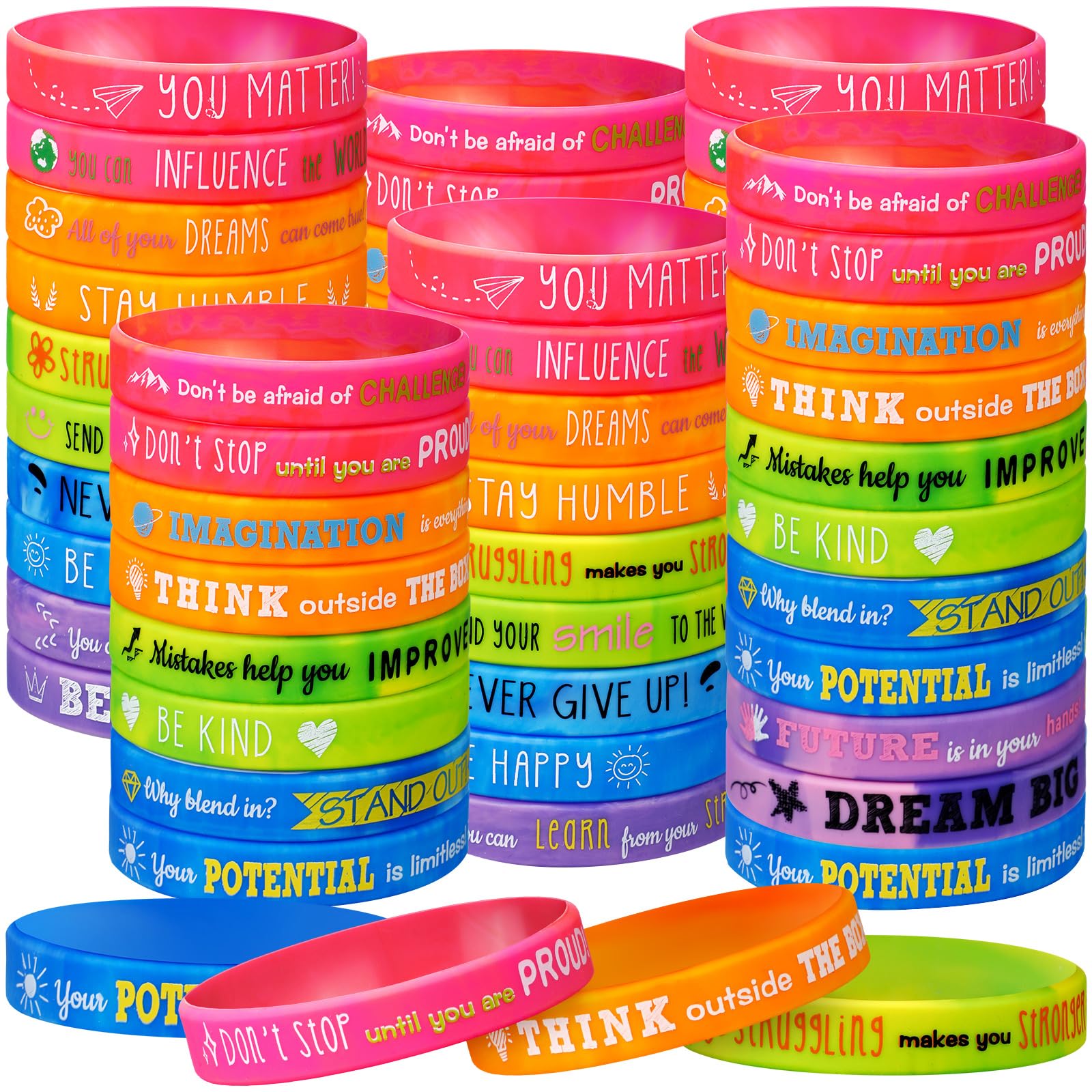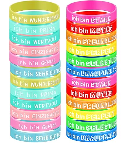 Hey du! Brauchst du mal wieder etwas Motivation im Alltag? Diese 20 Silikon-Armbänder mit positiven Sprüchen sind genau das Richtige! In 10 verschiedenen Farben und mit inspirierenden englischen Mottos.\n\nJedes Armband hat 20cm Umfang und ist für Handgelenke von 14-18cm geeignet. Das medizinische Silikon ist super dehnbar - bis zu 40%! Ob beim Sport, im Büro oder in der Schule - es sitzt perfekt und behindert dich nicht.\n\nWeißt du, was das Besondere ist? Du musst die Armbänder nicht mal zum Duschen abnehmen - einfach mit Duschgel waschen und fertig. Das Material ist langlebig, verformt sich nicht und ist frei von giftigen Stoffen.\n\nMit 20 Armbändern im Set hast du genug für jeden Tag der Woche - oder du verschenkst welche an Freunde. Die positiven Botschaften geben dir den extra Motivations-Kick, wenn du ihn brauchst.\n\nEgal ob für Kinder im Wachstum, Teenager oder Erwachsene - diese Armbänder passen zu jedem. Sie sind nicht nur modische Accessoires, sondern auch kleine Energie-Booster für den Tag.\n\nAlso, wenn du mal wieder einen kleinen Ansporn brauchst oder einfach nur bunte Armbänder magst, dann ist dieses Set perfekt für dich. Hol dir deine tägliche Portion positiver Energie!