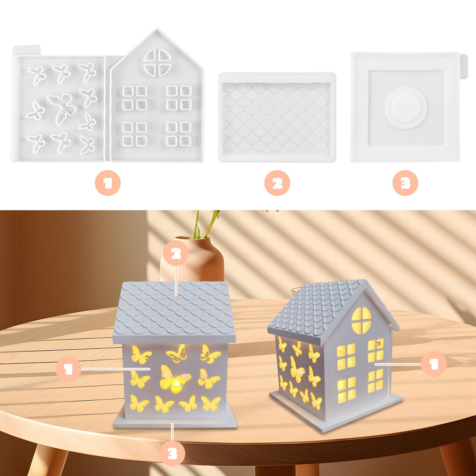 Kreativität ohne Grenzen! Dieses 3-teilige Set mit Weihnachtshaus-Silikonformen ist perfekt für Bastelfans. Enthält verschiedene Häuser, Bäume und Straßenlaternen - alles für eine gemütliche Winterlandschaft. Aus hochwertigem, flexiblem Silikon das sich leicht entformen lässt. Vielseitig verwendbar mit Epoxidharz, Kerzenwachs, Seife, Gips oder Beton. Hitze- und kältebeständig, spülmaschinengeeignet. Perfekt für DIY-Projekte, Geschenke oder Weihnachtsdekoration. Einfach Material einfüllen, aushärten lassen und das fertige Kunstwerk bewundern. Macht Basteln zum puren Vergnügen - ob alleine oder mit Kindern!