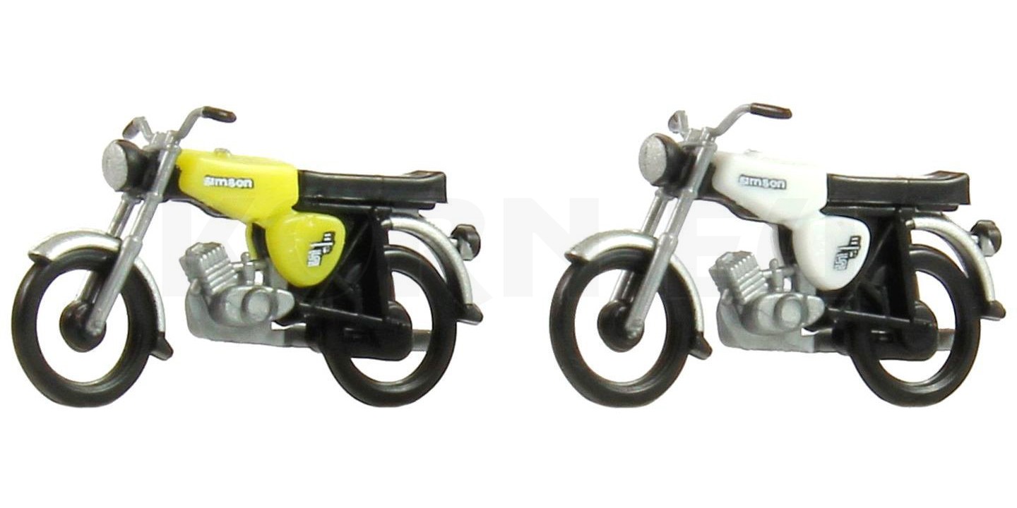 Simson-Feeling für deine Modellbahn! Dieses coole 2er-Set mit Simson S51B Modellen in dunkelgrün und grau bringt ostdeutsche Fahrzeuggeschichte in deine H0-Anlage. Die Fertigmodelle sind sofort einsatzbereit und sehen einfach klasse aus. Perfekt für alle Simson-Fans und Modellbahn-Enthusiasten, die ihre Anlage mit authentischen DDR-Fahrzeugen aufwerten wollen. Die Details sind super gelungen - man meint fast, man hört das typische 'Simson-Gebrumm'! Einfach auf die Schienen stellen und losfahren. Ideal als Geschenk für Modellbaufans oder um deine eigene Sammlung zu erweitern. Hol dir ein Stück deutsche Fahrzeuggeschichte im Miniaturformat!