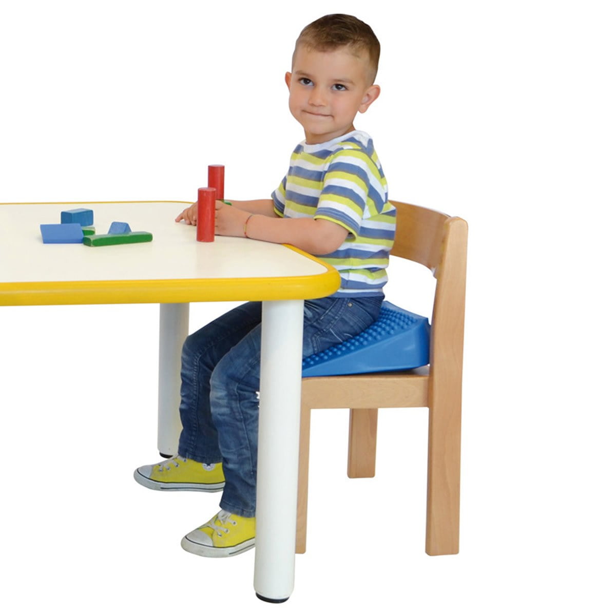 Hey, kennst du das auch? Dein Kind sitzt stundenlang in der Schule oder am Schreibtisch und nimmt dabei eine krumme Haltung ein? Genau dafür wurde dieses coole Movin'Sit Kissen entwickelt! Mit den Maßen 260x260mm passt es perfekt auf jeden Kindergarten- oder Schulstuhl. Einfach mit dem Mund oder einer Pumpe aufblasen - so weit, bis die gewünschte Stabilität erreicht ist. Das besondere: Es aktiviert die Rumpfmuskulatur und fördert so eine gesunde Körperhaltung. Bis 45kg empfohlen, hält es aber sogar bis 200kg aus! Perfekt auch für Gleichgewichtsübungen und um die Beckenhaltung zu verbessern. Wenn's nicht gebraucht wird, lässt es sich platzsparend verstauen. Ein echter Game-Changer für die Rückengesundheit deines Kindes!