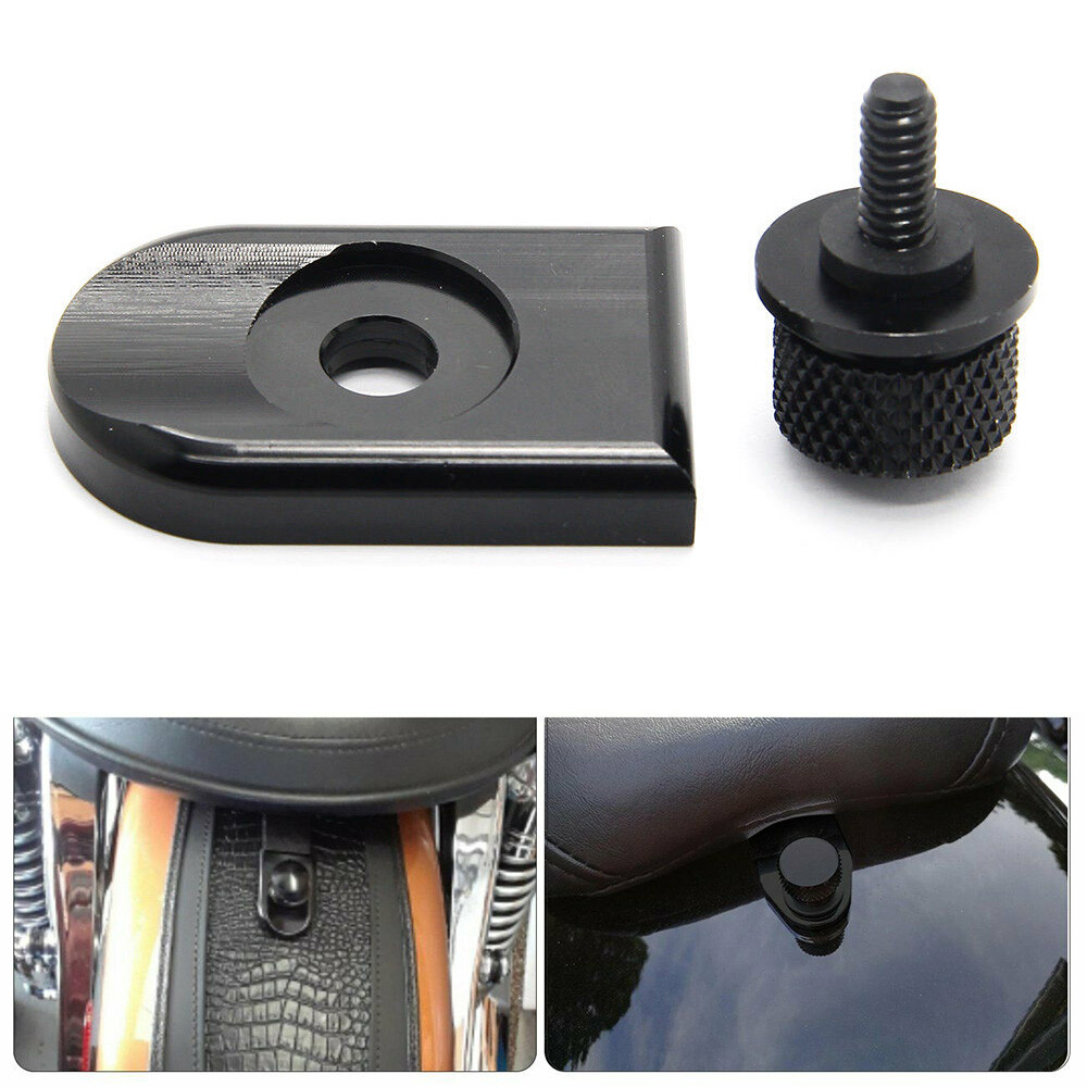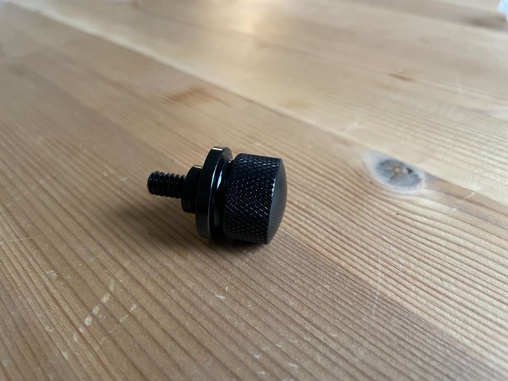 Stylische Sitzbefestigung für deine Harley! Diese hochwertige Sitzschraube im schwarzen Design macht dein Bike noch individueller. Komplett-Set inklusive Sitzleisten-Abdeckung und Kreuz-Rändelschraube. Maße: 50x31 mm für die Abdeckung, 29x18 mm für die Schraube. Passt perfekt für Harley Sportster 1996-2024 (Superlow, Iron 883, Forty Eight, 1200 Custom), DYNA, Softail und Touring Modelle mit 1/4-20 Gewinde. Einfache Installation - einfach alte Schraube entfernen, neue einsetzen und festziehen. Das edle schwarze Finish unterstreicht den Charakter deiner Maschine. Rostfrei und witterungsbeständig. Mach deine Harley komplett mit diesem detailverliebten Zubehör. Ein kleines Teil mit großer Wirkung für echte Harley-Fans!