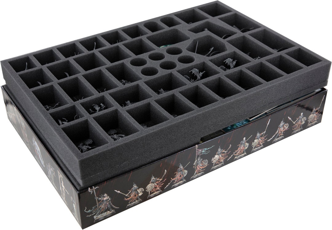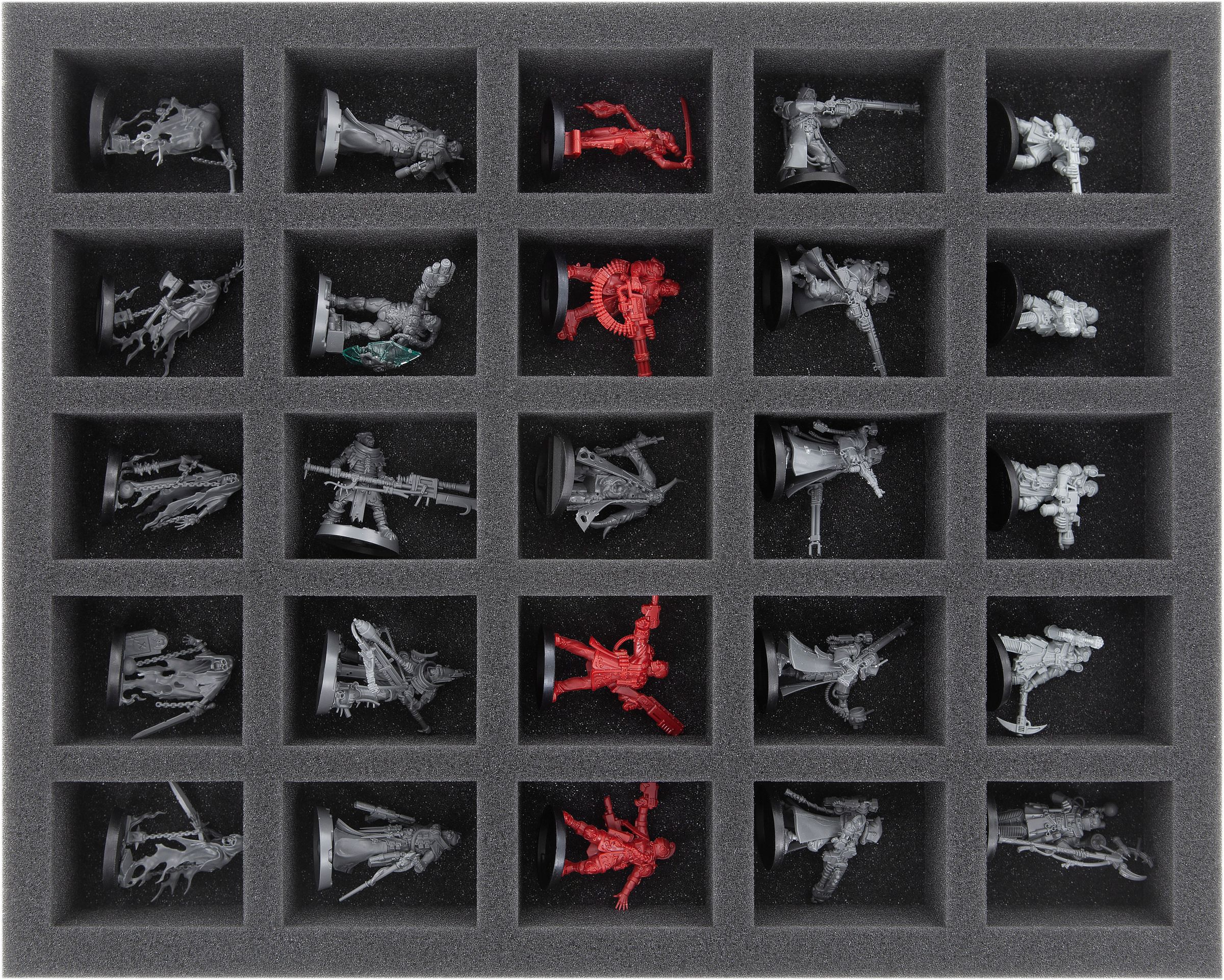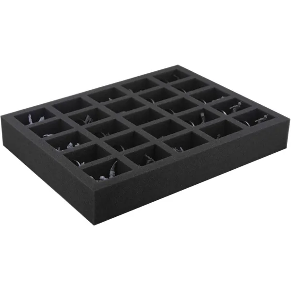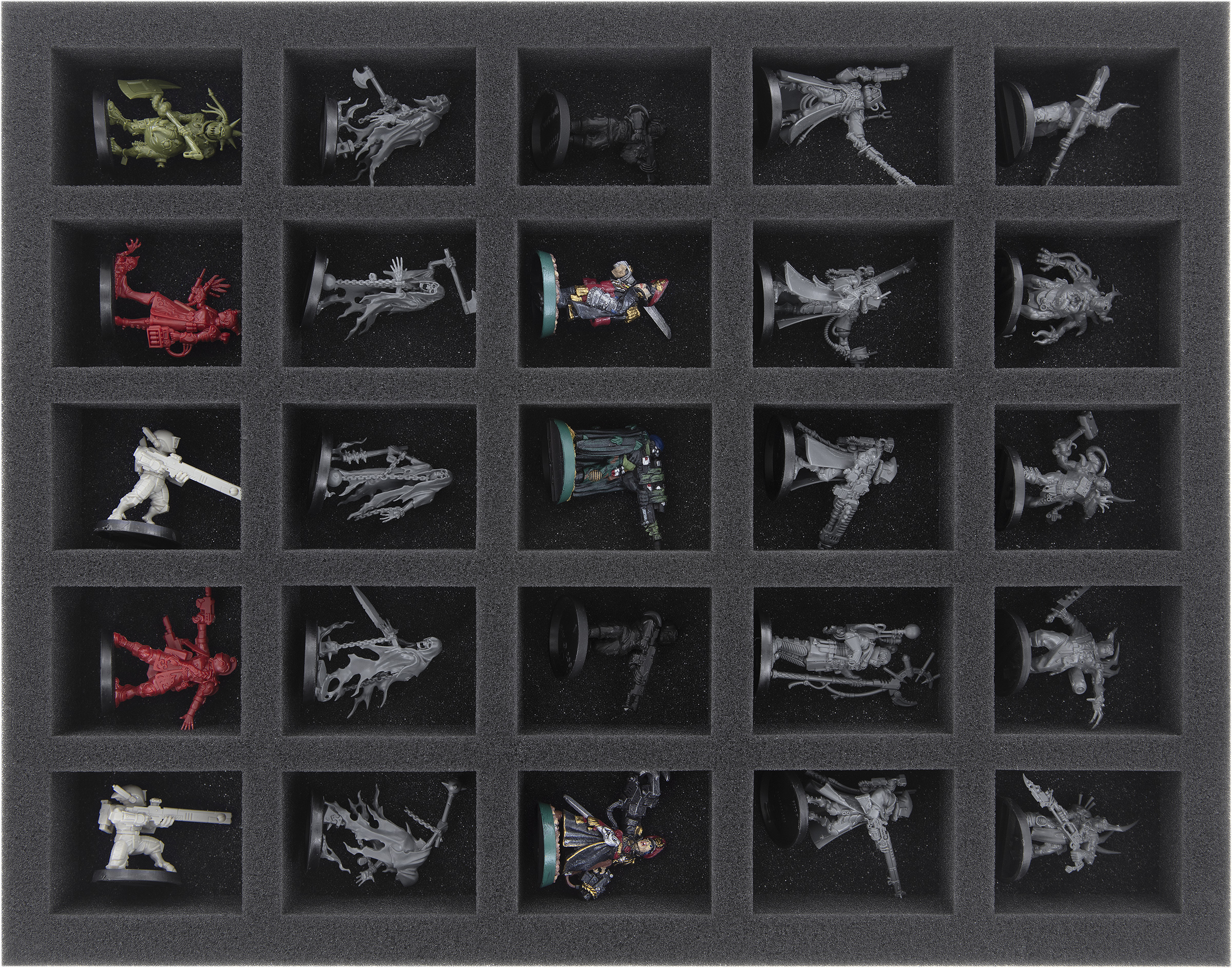 Für alle Warhammer-Fans und Tabletop-Spieler! Dieser FS050WH11 Aufbewahrungskasten aus Deutschland ist genau das, was du brauchst, um deine wertvollen Figuren sicher zu verstauen. Mit 50 mm Full-Size Schaumstoff und 25 großen Fächern findest du für jede Figur den perfekten Platz. Der Schaumstoff hat eine Rohdichte von 23,0 kg/pro Kubikmeter (+/- 2,0) und ist chlorfrei sowie säurefrei - also absolut sicher für deine Sammlerstücke. Ob Space Marines, Orks oder andere Miniaturen - hier bleiben sie vor Staub, Kratzern und Beschädigungen geschützt. Wichtig: Die abgebildeten Figuren dienen nur zum Größenvergleich und sind nicht im Lieferumfang enthalten! Made in Germany steht für Qualität und Langlebigkeit. Der Kasten ist perfekt für Transport und Lagerung - ob zu Hause oder auf dem Weg zum Spieleabend. Deine Figuren verdienen den besten Schutz, und den bekommst du mit diesem hochwertigen Aufbewahrungssystem. Endlich Ordnung im Figuren-Chaos!