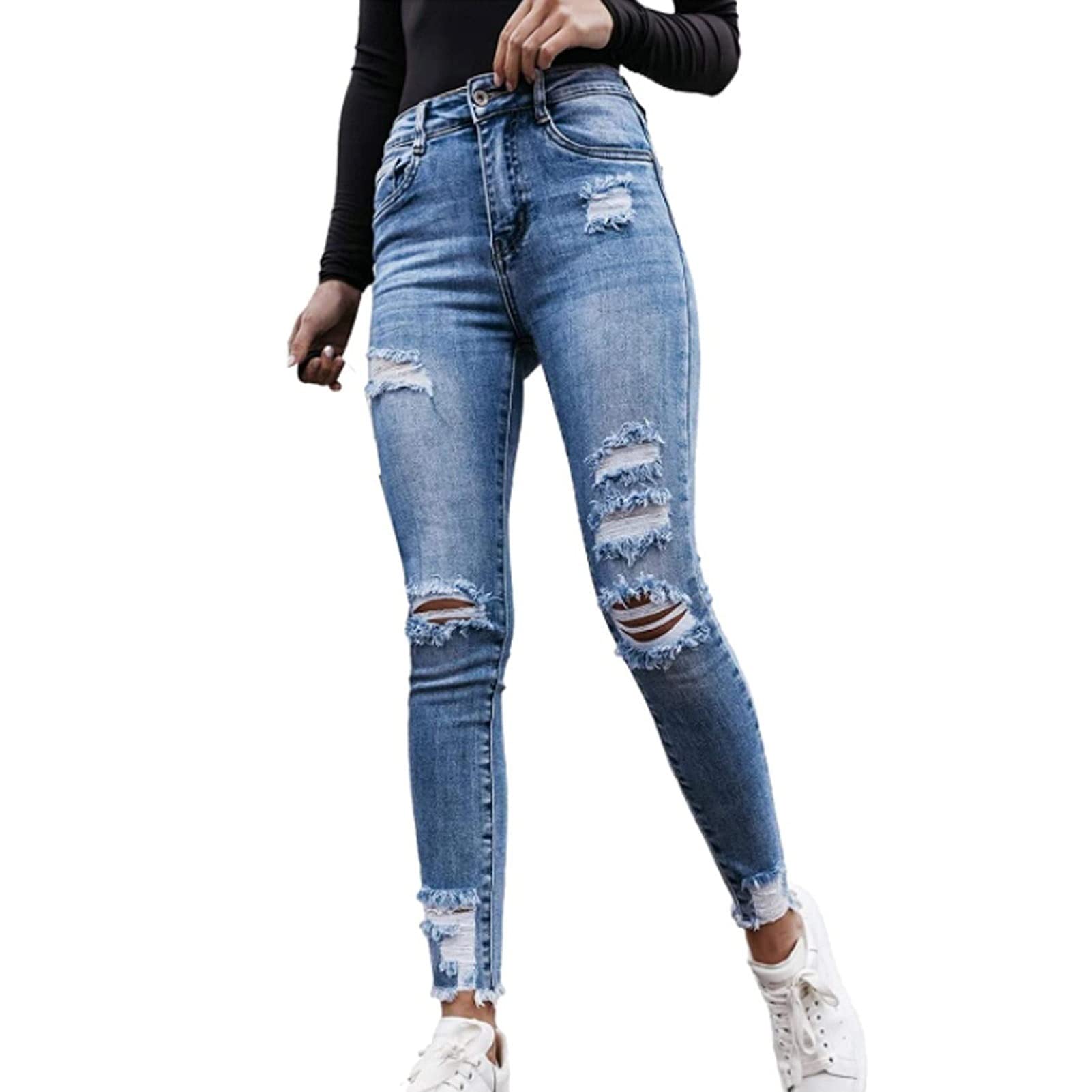Diese Damenjeans ist der absolute Sommer-Liebling! 3/4-Länge, super enge Skinny-Passform und dieser coole Destroyed-Look - was will man mehr? Der hohe Bund betont deine Taille und sorgt für eine tolle Silhouette. Mit Stretch-Anteil für maximale Bewegungsfreiheit. Perfekt für heiße Tage, Stadtbummel oder relaxedes Beisammensein mit Freunden. Die Capri-Länge zeigt deine schönsten Sneaker oder Sandalen. Und die zerrissenen Details geben dem ganzen nochmal diesen lässigen Vibe. Aus weichem Denim, der sich wie eine zweite Haut anfühlt. Passt zu allem - von T-Shirts über Blusen bis zu schicken Tops. Verfügbar in verschiedenen Größen. Mach dich ready für Komplimente!