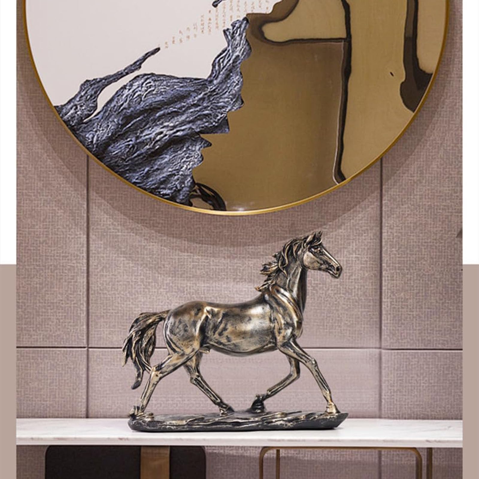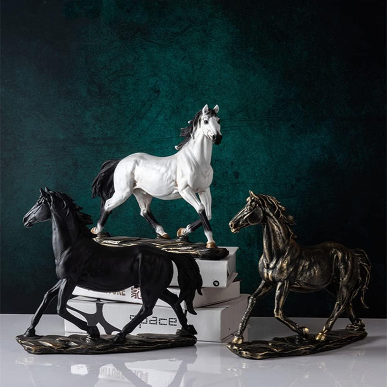 Wow, diese Pferdefigur ist einfach der Hingucker in jedem Raum! Die Sosoport Pferdeskulptur aus hochwertigem Harz kommt in einer perfekten Größe von 23 x 9,5 x 28 cm - also nicht zu groß und nicht zu klein. Das Besondere: Die Oberfläche ist superglatt und fühlt sich richtig hochwertig an.\n\nStell sie doch einfach mal auf deinen Schreibtisch im Büro, ins Wohnzimmerregal oder sogar als besondere Deko neben deine Pflanzen. Die stehende Pferdefigur sieht so lebensecht aus, dass man fast meint, sie könnte jeden Moment losgaloppieren!\n\nWas ich besonders praktisch finde: Der Boden ist ganz flach, also steht sie super stabil. Und wenn mal Staub drauf ist, einfach mit einem feuchten Tuch abwischen - schon sieht sie wieder aus wie neu.\n\nPerfekt als Geschenk für Pferdefreunde oder einfach für dich selbst, wenn du deinem Zuhause eine besondere Note verleihen willst. Die Figur strahlt so eine natürliche Eleganz aus, die jeden Raum sofort aufwertet. Egal ob im modernen Loft oder im gemütlichen Landhaus-Stil - dieses Pferd passt überall hin!\n\nUnd weißt du was? Meine Freundin hat sich die Figur auch gekauft und stellt sie jetzt im Flur auf. Jeder Besucher bleibt stehen und bewundert sie. So eine tolle Deko bekommst du selten zu diesem Preis!