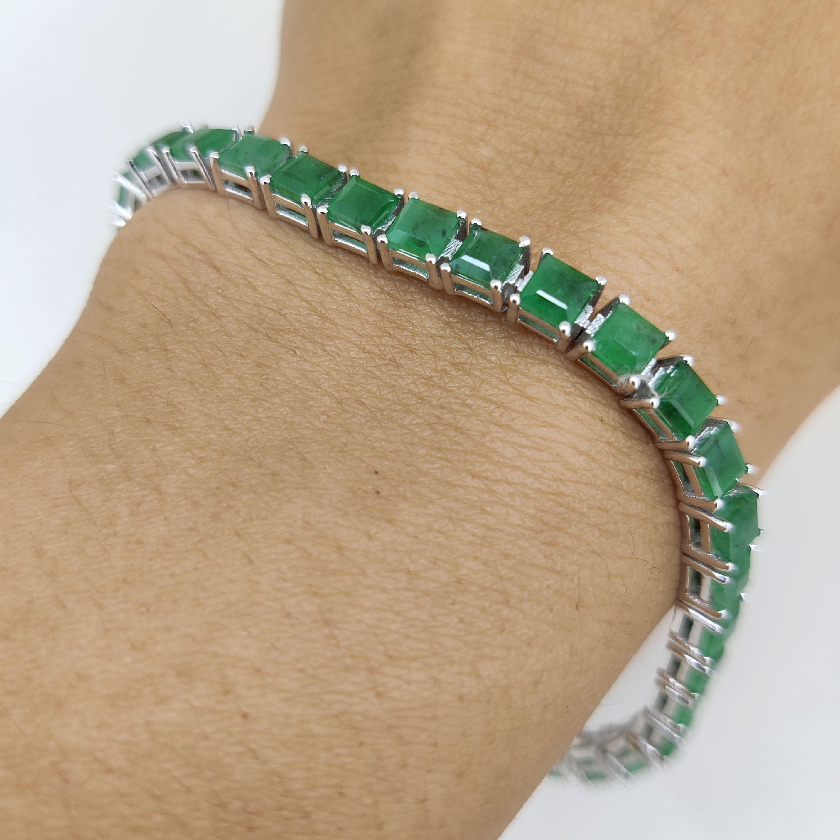 Wow, dieses Tennisarmband ist einfach traumhaft! Aus echtem 925er Sterling Silber gefertigt und mit funkelnden Smaragd-Steinen besetzt - ein absoluter Hingucker für jeden Anlass.