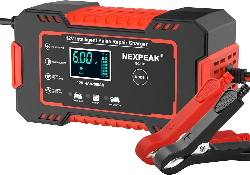 Nie wieder eine leere Batterie! Dieses smarte 6A Ladegerät ist dein Retter in der Not. Perfekt für Autos, Motorräder, Boote und mehr - alles mit 12V Blei-Säure-Batterien von 2-100Ah. Das klare LCD-Display zeigt dir immer genau, was Sache ist. Acht Schutzfunktionen sorgen für absolute Sicherheit: Kurzschluss-, Überhitzungs-, Verpolungs- und Überladeschutz inklusive! Die automatische Temperaturkompensation passt sich jedem Wetter an - ob Sommerhitze oder Winterkälte. Einfache Bedienung mit nur einem Knopf für verschiedene Modi. Bis zu 50% schneller als Standard-Ladegeräte! Perfekt für die Garage, Werkstatt oder den Winter - damit dein Fahrzeug immer startklar ist.