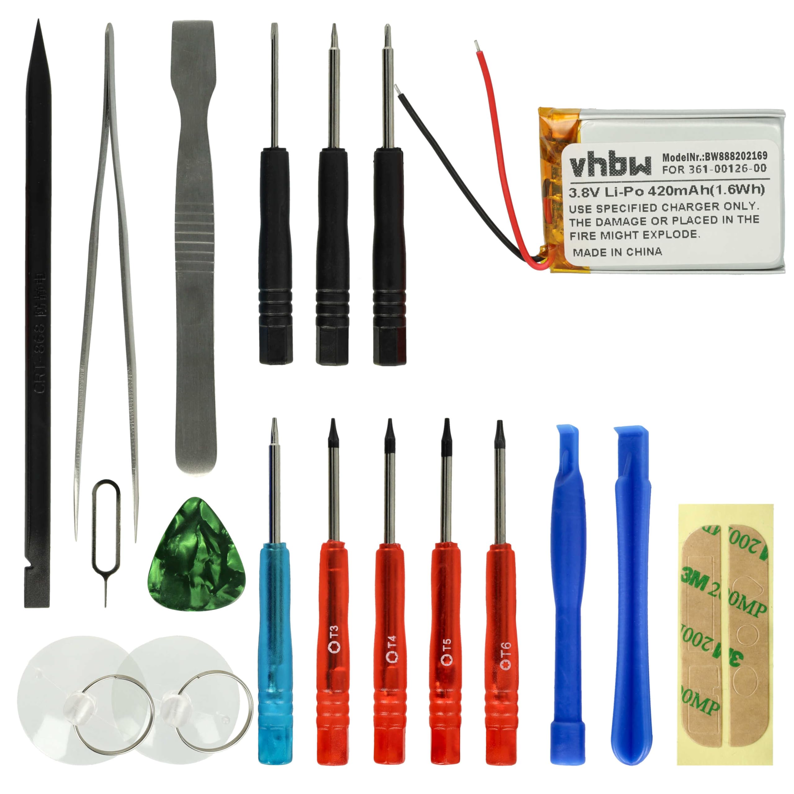 Deine Garmin Smartwatch hält nicht mehr lange durch? Mit diesem hochwertigen Ersatzakku machst du sie wieder fit! Der 400mAh Li-Polymer Akku mit 3,7V Spannung ersetzt das Original Garmin 361-00126-00. Im Lieferumfang ist ein komplettes Werkzeug-Set enthalten: Saugnapf, Klebepad, Plektron, Sim-Öffner, Plastikhebel, Pinzette und verschiedene Schraubendreher (Torx T3-T6, Pentalobe TS1/TS4). So kannst du den Akku-Wechsel ganz einfach selbst durchführen. Mit Kurzschluss-, Überhitzungs- und Überspannungsschutz für maximale Sicherheit. Jede Akku-Zelle wird vor dem Versand geprüft. Verlängere die Lebensdauer deiner teuren Smartwatch - viel günstiger als ein Neugerät! Einfach wechseln und wieder durchstarten!