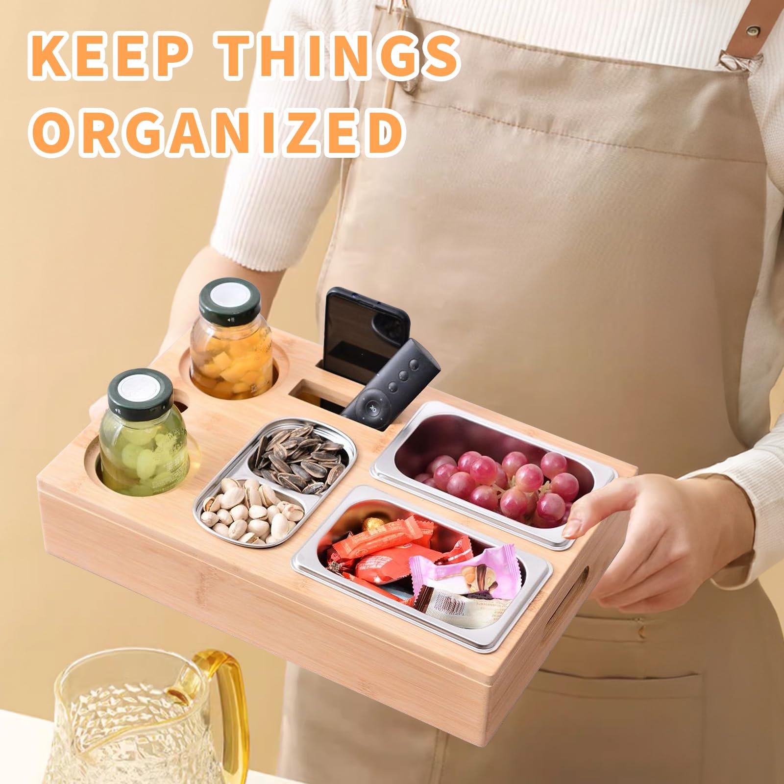Immer das Chaos auf der Couch? Das SnackPad bringt Ordnung ins Wohnzimmer! Die stylische Bar aus Premium-Bambus hält Snacks, Controller und Handy sicher fest. Perfekt für gemütliche Filmabende oder Gaming-Sessions. Einfach auf die Couchlehne klemmen und schon hast du alles griffbereit. Kein Umkippen mehr - deine Getränke und Knabbereien bleiben sicher. Das natürliche Bambus-Design sieht super aus und ist extrem stabil. Viel besser als diese billigen Plastikteile! Perfektes Geschenk für Teenager, Gamer oder einfach jeden, der es gemütlich mag. Endlich keine Krümel mehr in der Couch! Ob für Chips, Smartphone oder die Fernbedienung - alles hat seinen Platz. Die rutschfeste Oberfläche hält auch glatte Geräte sicher. Einfach abwischbar und hygienisch. Mach deine Couch zur perfekten Relax-Zone! Kleiner Tipp: Ideal als Geburtstagsgeschenk oder für Weihnachten. Hol dir jetzt das SnackPad und genieße entspannte Stunden ohne Chaos!