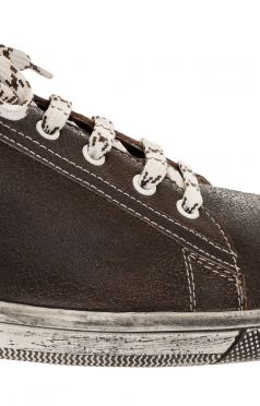 Knöchelhoch geschnitten als praktischer Boots, perfekt zur Lederhose, aber auch zur Jeans oder casual Hose. Die farblich abgestimmten Schnürsenkel runden das Gesamtbild ab.