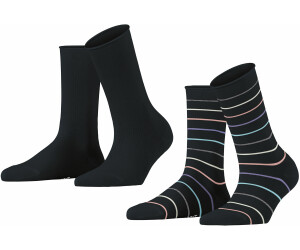 ESPRIT Damen Sporty Stripe Socken 2-Pack - Baumwolle Schwarz/Blau Gr. 35-42