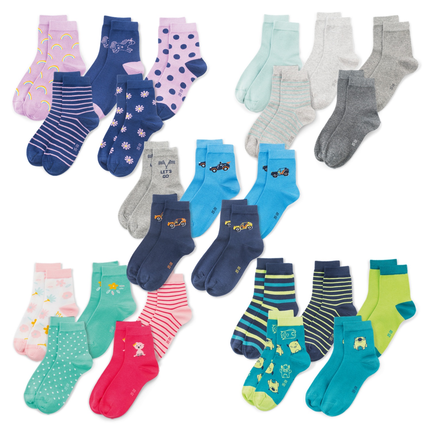 So süß! Diese Kinder-Socken im 5er-Pack sind einfach perfekt für kleine Füße. Aus weicher Baumwolle, super atmungsaktiv und mit niedlichen Cartoon-Motiven. Anti-Pilling-Materialien - halten ewig schön! Flache Nähte, kein Drücken. Vierfach dehnbar, sitzen perfekt ohne einzuschneiden. Ideal für Jungen und Mädchen von 1-10 Jahren. Größen: S (1-3 J.), M (3-5 J.), L (5-7 J.), XL (7-10 J.). Mittlere Dicke - passend für Frühling, Sommer, Herbst und milde Winter. Perfekt als Geschenk zu Geburtstag, Weihnachten oder Kindertag! Weich, kuschelig und hautfreundlich. Dein Kind wird sie lieben! Einfach anziehen und losrennen. Jeden Tag ein anderes Motiv - Langeweile adé! Hol dir jetzt das Pack und hab immer Ersatz parat.