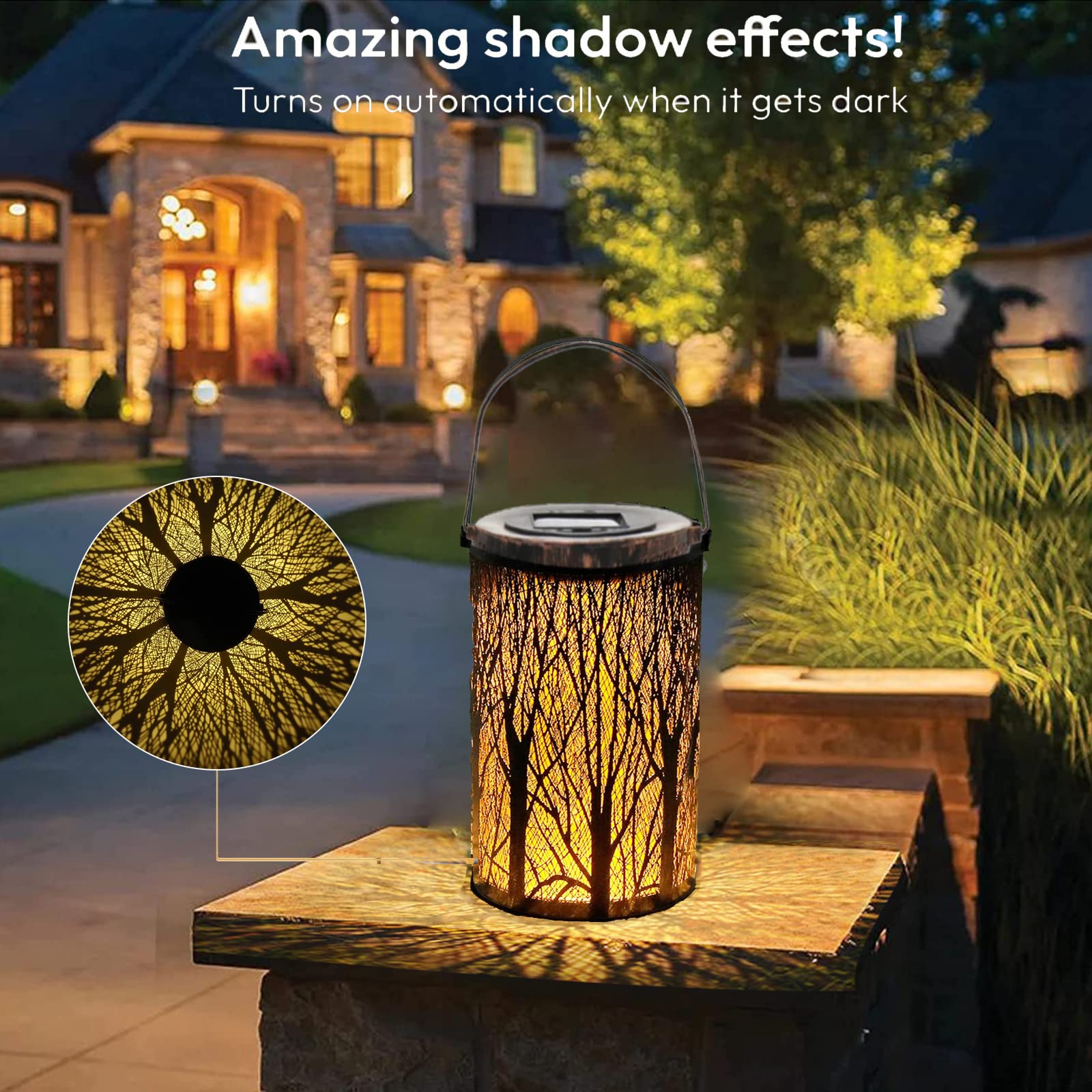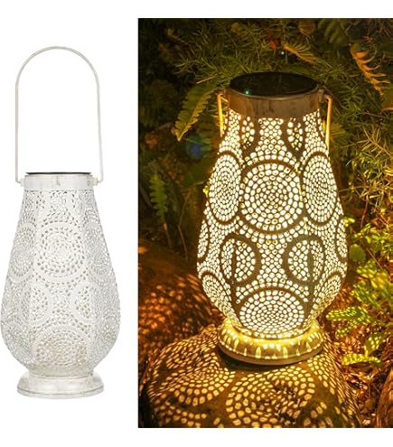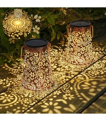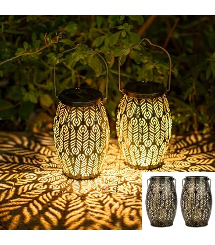 Diese Solarlaternen machen deinen Garten abends richtig gemütlich! Im 2er-Set mit wunderschönem Vintage-Design und floralen Mustern. IP55 wasserfest - halten Regen und Sonne stand. Automatischer Ein-/Ausschalter - laden tagsüber auf und leuchten abends von allein. Aus Metall und Kunststoff, richtig stabil. Mit Henkel zum Aufhängen oder einfach hinstellen. Ob an Bäumen, auf der Terrasse oder dem Balkon - überall machen sie eine gute Figur. Das warme Licht wirft tolle Muster und schafft eine romantische Atmosphäre. 6-8 Stunden Laden, 8-10 Stunden Leuchtdauer. Einfach Solarfolie entfernen, Schalter umlegen und in die Sonne stellen. Perfekte Garten-Deko die nichts kostet!