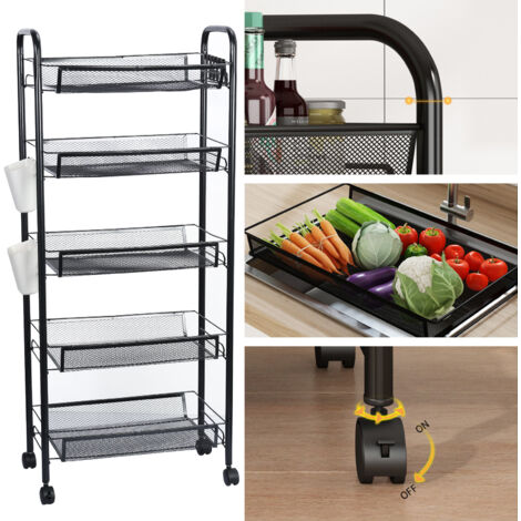 Ordnung muss sein! Dieser praktische Aufbewahrungswagen von Somerway bringt System in deine vier Wände. Mit 5 Etagen und 360-Grad-Rädern ist er der perfekte Helfer für Küche, Bad, Wohnzimmer oder Home-Office.