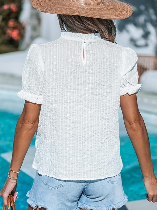Elegant und lässig zugleich! Diese wunderschöne Bluse von CUPSHE kombiniert zarte Spitze mit romantischen Flügelärmeln für einen traumhaften Boho-Look. Aus 100% Baumwolle gefertigt - super atmungsaktiv und angenehm auf der Haut. Die bestickten Ösen und Rüschen verleihen dem Top einen besonderen Charme. Mit lockerer Passform sitzt es bequem und verzeiht kleine Figurpölsterchen. Perfekt für den Sommer - ob im Büro, beim Brunch, auf Hochzeiten oder einfach für den Alltag. Ein echter Allrounder, der sich vielseitig kombinieren lässt. Einfache Pflege: Mit kaltem Wasser waschen, nicht bleichen und nicht im Trockner trocknen. In verschiedenen Größen verfügbar - am besten vorher in der Größentabelle nachmessen für die perfekte Passform. Sieh gut aus und fühl dich wohl in diesem bezaubernden Sommer-Top!