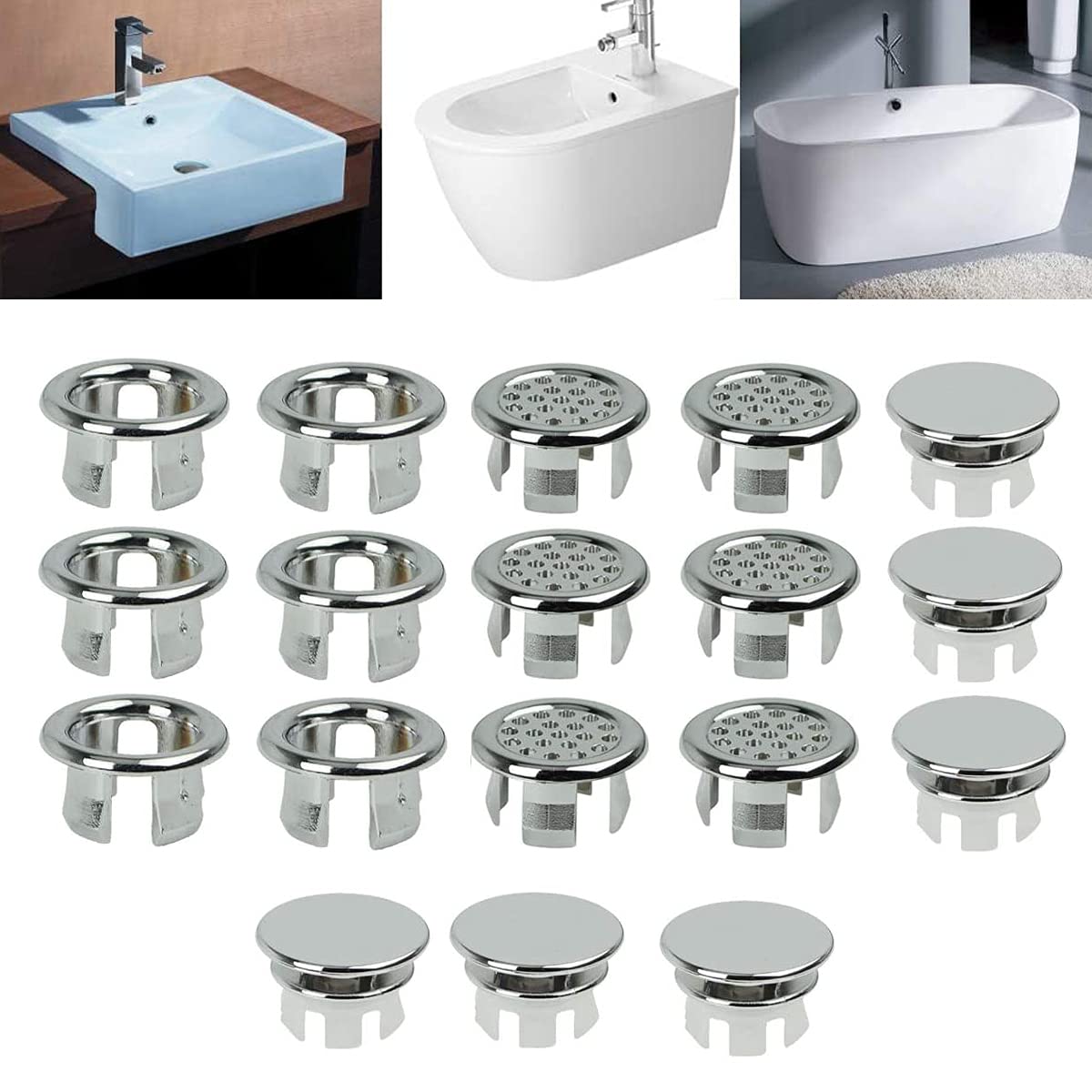 Diese 8 universellen Überlaufabdeckungen von Sonku passen für die meisten Waschbecken mit 22 mm Löchern. Aus stabilem ABS-Kunststoff in silber – dekorativ und praktisch zugleich. Die Abdeckungen verhindern, dass Schmutz ins Überlaufloch fällt, und sehen dabei modern aus. Einfach ohne Werkzeug aufdrücken – fertig! Perfekt für Bad, Küche oder Gäste-WC. Ob zu Hause, im Hotel oder im Einkaufszentrum – mit diesen Blenden sieht alles gleich viel ordentlicher aus. Hol dir das Set und verleihe deinen Waschbecken einen kleinen Upgrade – günstig und effektiv!