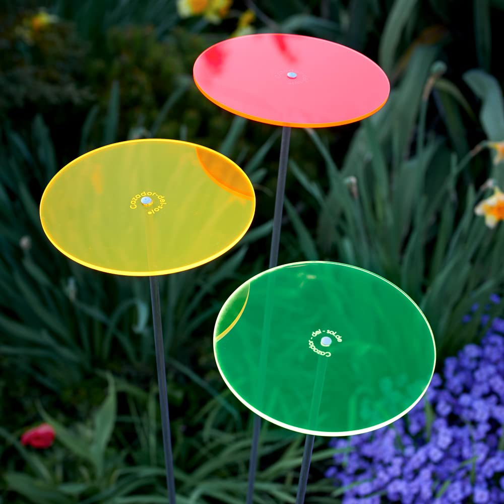 Bring Sonne in dein Zuhause - auch an regnerischen Tagen! Diese bezaubernden Sonnenfänger von Cazador-del-sol (das Original aus Deutschland!) leuchten in den schönsten Farben. Drei mini Sonnenstraßen mit je 8cm Durchmesser und 25cm langen Stäben - perfekt für die Vase, den Balkonkasten oder als Tischdekoration. Das besondere: Sie fluoreszieren und zaubern selbst bei wenig Licht eine magische Atmosphäre. Made in Germany mit 10 Jahren Garantie auf Leuchtkraft und Bruchfestigkeit! Einfach in die Erde stecken oder in eine Vase stellen und sich an dem sanften Schimmern erfreuen. Das perfekte Geschenk für alle, die sich immer ein bisschen Sonnenschein wünschen. Qualität, die man sieht - und die lange hält!