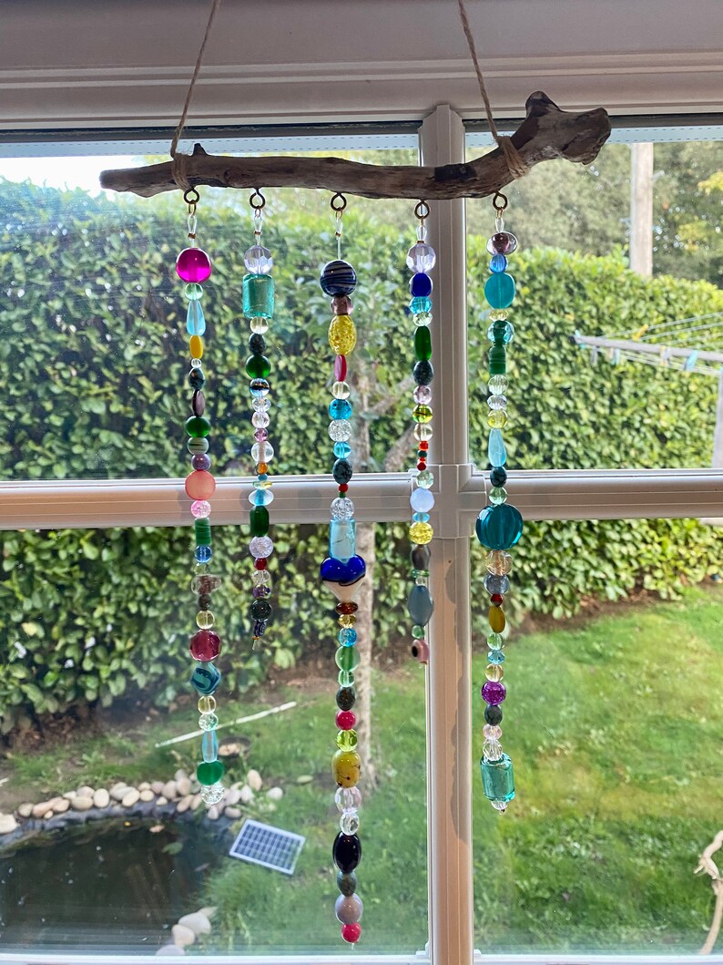 • Sonnenfänger Windspiel Mit Chakra Perlen - 39cm Garten Deko In Gold - Für Fenster & Outdoor