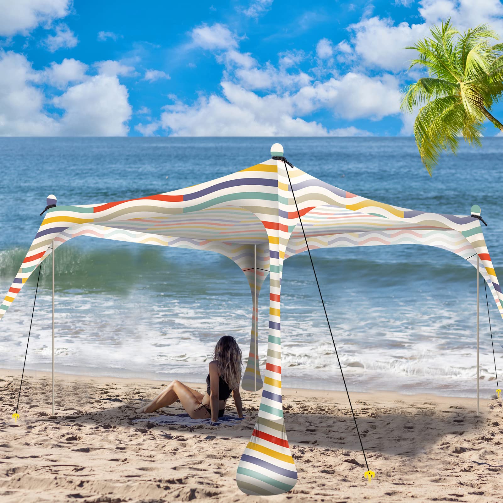 Perfekter Sonnenschutz für den ganzen Tag am Strand! Dieses coole Strandzelt in Blau bietet mit UPF50+ Schutz vor 99% der UV-Strahlen - ideal für Kinder und Erwachsene. Mit 210x150x170cm riesig groß, bietet Platz für 6-8 Personen! Das elastische Lycra-Gewebe ist wasserdicht, winddicht und reißfest. Hält selbst bei 20 mph Wind stand - einfach mit Sandsäcken oder Erdankern sichern. Die beiden Eisenstangen sind rostfrei und leicht aufzubauen. Perfekt nicht nur für den Strand, sondern auch für Garten, Picknick, Camping oder Festival. Inklusive Tragetasche für einfachen Transport. Der absolute Sommer-Begleiter für die ganze Familie - damit der Strandtag unvergesslich wird!