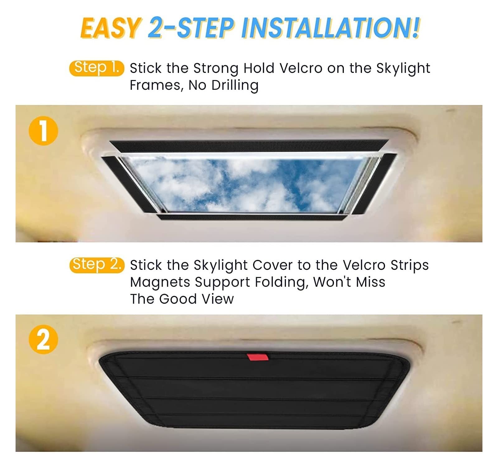 Perfekter Sonnenschutz für dein Wohnmobil! Mit 41x41cm Größe passt dieser Sonnenschutz ideal in die meisten Dachfenster von Wohnmobilen, Reiseanhängern und Campern. 4-lagig aufgebaut mit Oxford-Stoff, Perl-Baumwolle und Aluminiumfolie - blockiert komplett die Sonneneinstrahlung und hält die Hitze draußen. Dadurch bleibt dein Wohnmobil schön kühl und du sparst Energie. Vollständig wasserdicht - kein Problem bei Regen! Einfache Installation in nur 3 Minuten - ganz ohne bohren. Mit hochwertigen Nylon-Knöpfen die sicher halten. Faltbar design ermöglicht Höhenverstellung und platzsparende Aufbewahrung. Inklusive praktischer Aufbewahrungstasche. Schützt nicht nur vor Sonne sondern auch für mehr Privatsphäre beim Campen. Macht jede Reise angenehmer und erholsamer! Einfach einsetzen und den Komfort genießen - ob auf dem Campingplatz oder unterwegs.