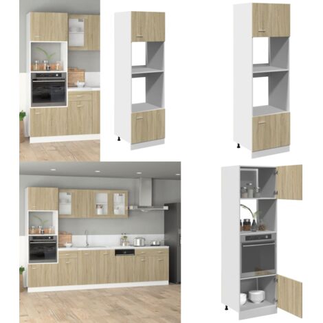Platzsparend und stylisch! Dieser vidaXL Mikrowellenumbauschrank in Sonoma-Eiche-Optik ist die perfekte Lösung für eine aufgeräumte Küche. Mit den Maßen 60x57x207 cm (BxTxH) bietet er nicht nur Platz für deine Mikrowelle, sondern auch reichlich Stauraum für Schüsseln, Teller, Töpfe und andere Küchenutensilien. Aus robustem Holzwerkstoff gefertigt, ist er resistent gegen Feuchtigkeit, Verformung und Rissbildung. Die glatte Oberfläche ist super pflegeleicht - einfach mit einem feuchten Tuch abwischen. Die praktischen Türen verstecken Unordnung und sorgen für ein sauberes Gesamtbild. Montage ist erforderlich, aber mit der beiliegenden Anleitung machbar. Wichtig: Schrauben und Dübel für die Wandbefestigung sind nicht enthalten - bei Unsicherheit lieber professionelle Hilfe holen. So wird deine Küche im Handumdrehen organisiert und sieht dabei noch toll aus!