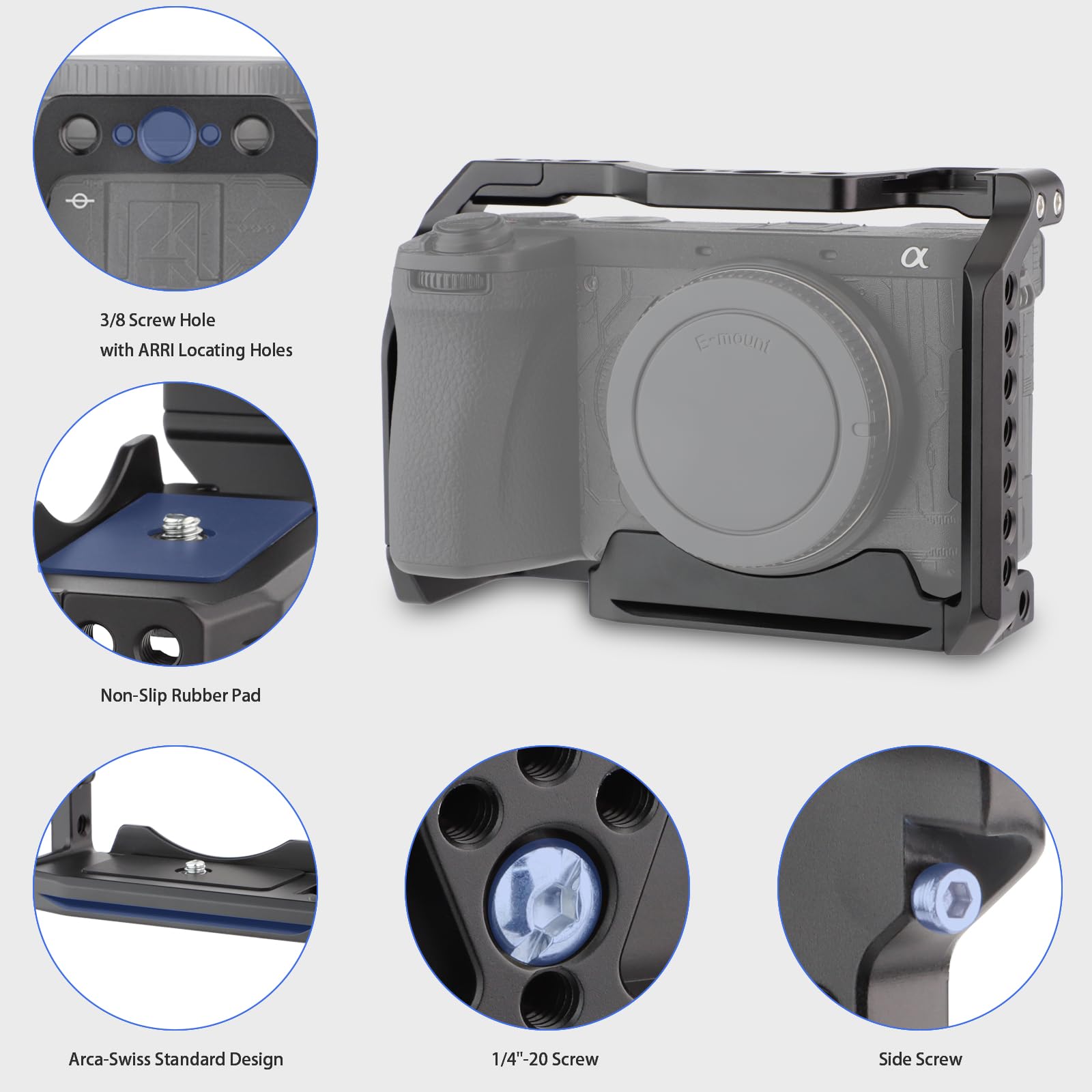 Fotografierst du mit Sony A6700? Dieser Aluminium-Käfig ist ein Game-Changer! CNC-gefräst, nur 132g leicht. Mit kalter Schuh für Mikrofon/Licht, vielen 1/4-20 und 3/8-16 Gewindelöchern. Integrierte Arca-Swiss Schnellwechselplatte - perfekt für Stativ oder Gimbal. Anti-Rutsch-Pads schützen deine Kamera vor Kratzern. Vollzugriff auf alle Tasten und Anschlüsse. Kompatibel mit DJI RS 2, RSC 2, RS 3 Gimbal. Magnet für Schraubenschlüssel - praktisch! Macht deine Kamera vielseitiger und professioneller. Egal ob Video oder Foto - damit hast du alles im Griff! Ein Muss für kreative Shootings!