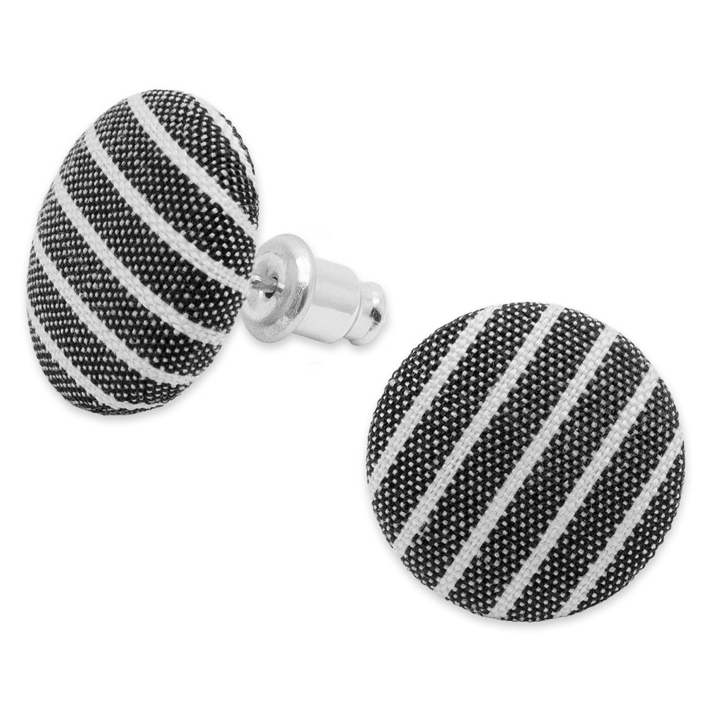 • Soul-Cats Stoff Ohrstecker - Weiße Streifen Auf Blau-Schwarz