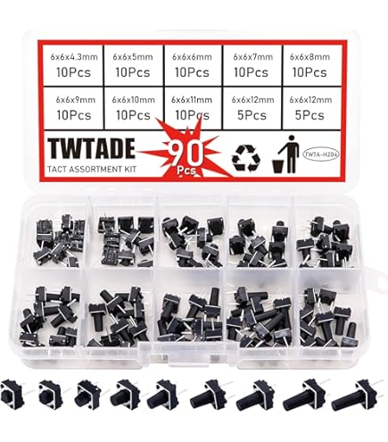 Elektronik-Bastler aufgepasst! Diese 40 taktilen Schalter sind perfekt für deine PCB-Projekte. Mit 7x7mm Größe und 16mm Höhe passen sie in die meisten Platinen.\n\nAls Momentary-Schalter machen sie nur Kontakt, solange du sie drückst - ideal für Reset-Taster, Menüsteuerung oder andere Steuerfunktionen.\n\nDie 6-Pin-Konfiguration ist super flexibel: Du kannst sie als Jumper verwenden und musst dir weniger Gedanken ums Platinenlayout machen.\n\nAus Kunststoff und Metall gefertigt, halten sie was aus. Geringer Übergangswiderstand und kaum Prellgeräusche - genau das, was man von guten Schaltern erwartet.\n\nPerfekt für Haushaltsgeräte, Elektronik-Projekte oder Reparaturen. Mit 40 Stück im Pack hast du genug für mehrere Projekte oder Ersatz. Einfach unverzichtbar für jede Elektronik-Werkstatt!