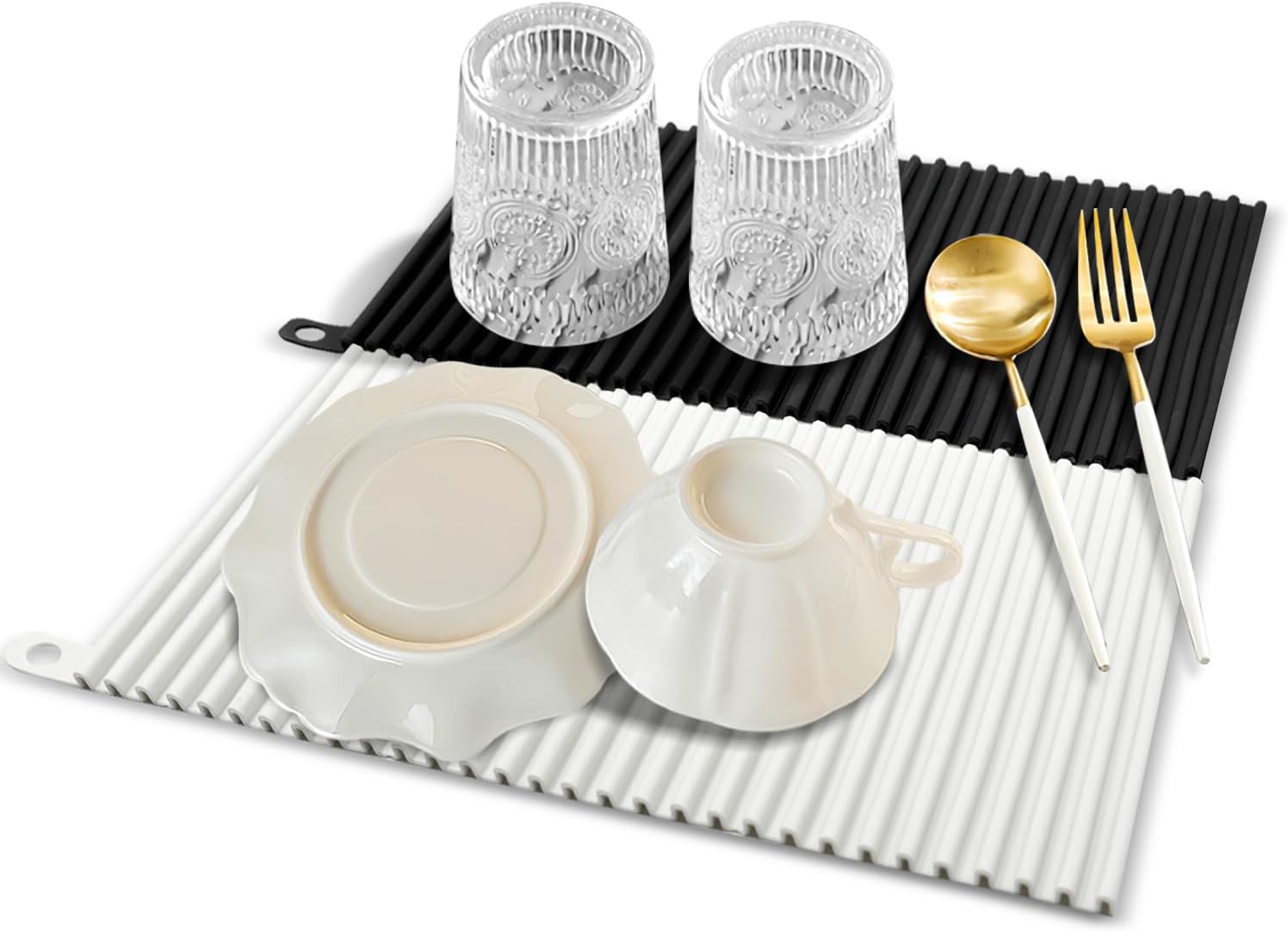 Ist aus lebensmittelechtem Silikon, BPA-frei und super easy zu reinigen. Einfach unter Wasser abspülen oder in die Spülmaschine packen. Die breiten Rillen sorgen für gute Luftzirkulation - dein Geschirr trocknet schneller und es bildet sich kein Schimmel.