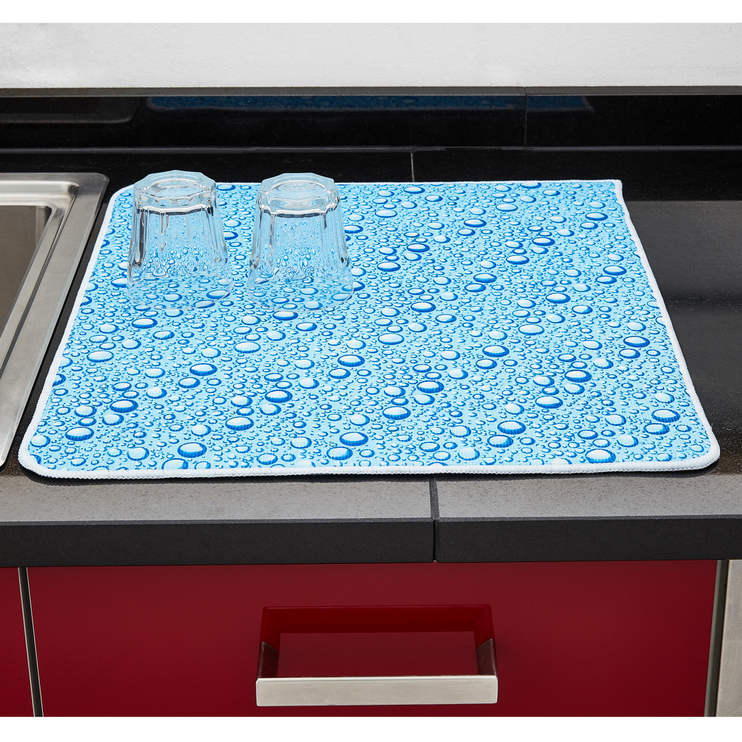 Endlich keine nassen Arbeitsplatten mehr! Diese Abtropfmatte aus Silikon ist der Hit für jede Küche. Maße 45 x 65 cm - also genug Platz für dein Geschirr nach dem Spülen.