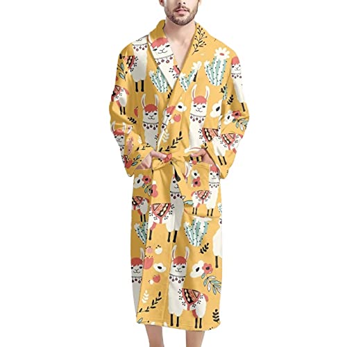 Lama Bademantel Blau Weiß | Weicher Spa Bademantel | Für Damen & Herren