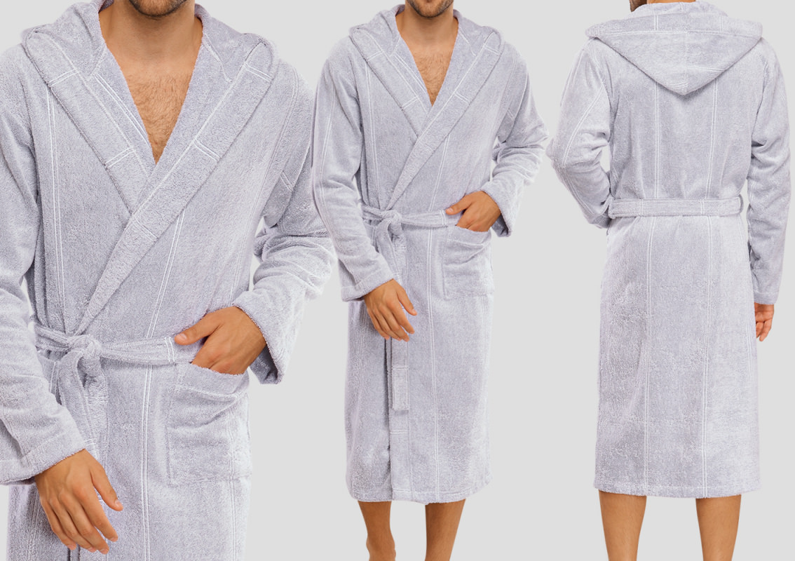 Nach dem Duschen, Saunabesuch oder einfach nur zum Relaxen - dieser Herren Bademantel ist dein neuer bester Freund! Aus hochwertigem Material das sich superweich auf der Haut anfühlt. Knielang und mit praktischen Taschen für dein Handy oder Fernbedienung.\\n\\nNicht zu schwer, nicht zu warm - genau richtig für zu Hause. Sieht stylisch aus, ist aber vor allem mega bequem. Perfekt für den Morgenkaffee, abends vor dem TV oder wenn mal Besuch kommt.\\n\\nEinfach überziehen und wohlfühlen! Passt gut zu allem und die Qualität hält lange. Dein Go-To Bademantel für jeden Tag - trust me, du willst ihn nicht mehr ausziehen!