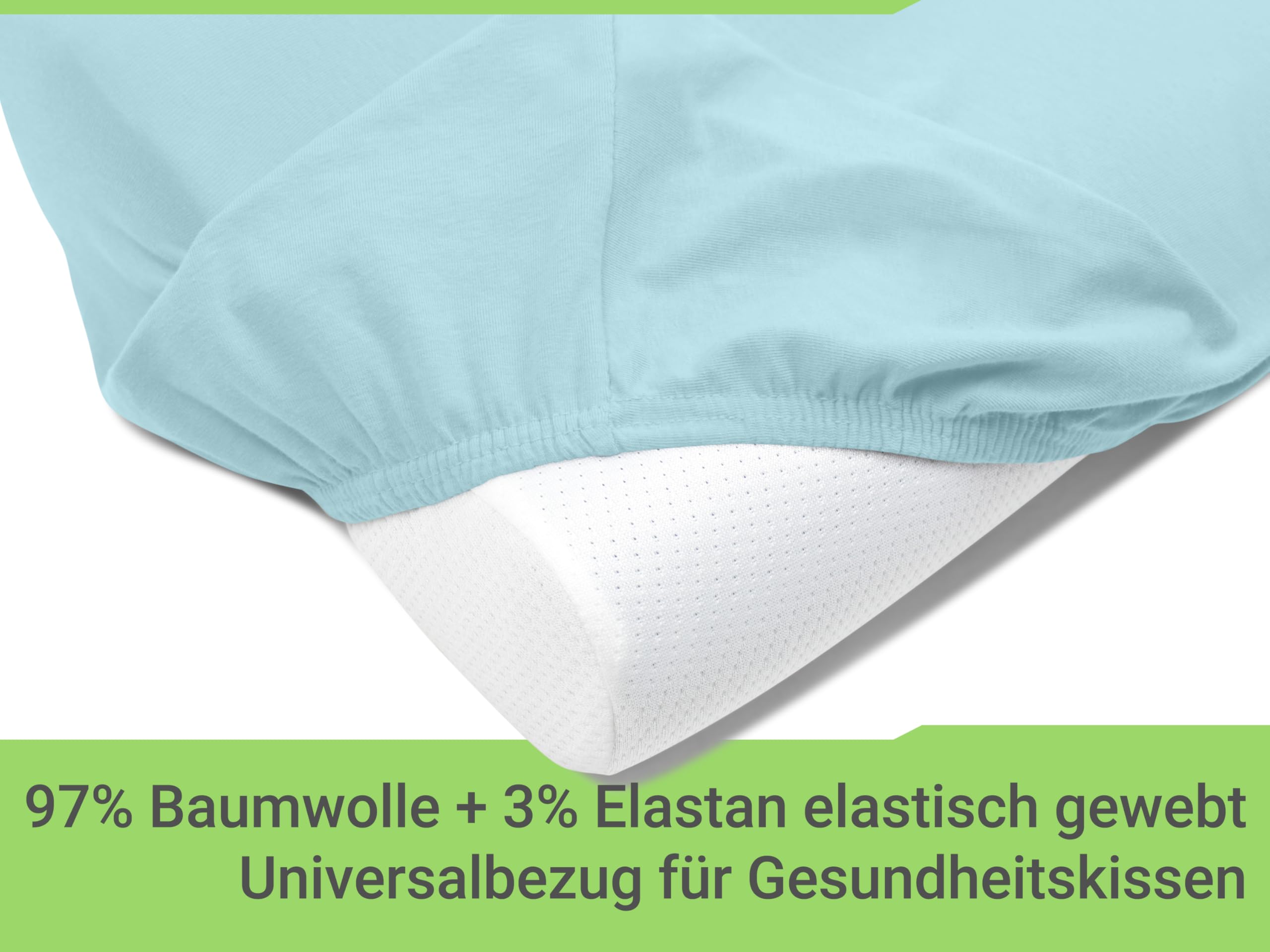 Mach deine Gesundheitskissen wieder frisch! Diese praktischen Spannbezüge im 2er-Pack sind die perfekte Lösung für abgenutzte oder verschmutzte Kissen. In schickem Anthrazit passen sie zu jedem Einrichtungsstil. Hergestellt aus 97% Baumwolle und 3% Elastan - super weich, atmungsaktiv und dehnbar. Die Größe 35-40 x 55-60 cm passt auf die meisten Standard-Gesundheitskissen. Mit doppelt vernähtem Gummizug für perfekten Halt - kein Verrutschen mehr! Einfach über das Kissen ziehen und schon sieht es aus wie neu. Waschbar bei 60°C, also ideal für Allergiker. Auch für den Trockner geeignet und bügelfest. Perfekt für zu Hause, aber auch super als Geschenk für Gesundheitsbewusste. Wechsle einfach die Bezüge statt ganze Kissen zu kaufen - praktisch und umweltfreundlich!