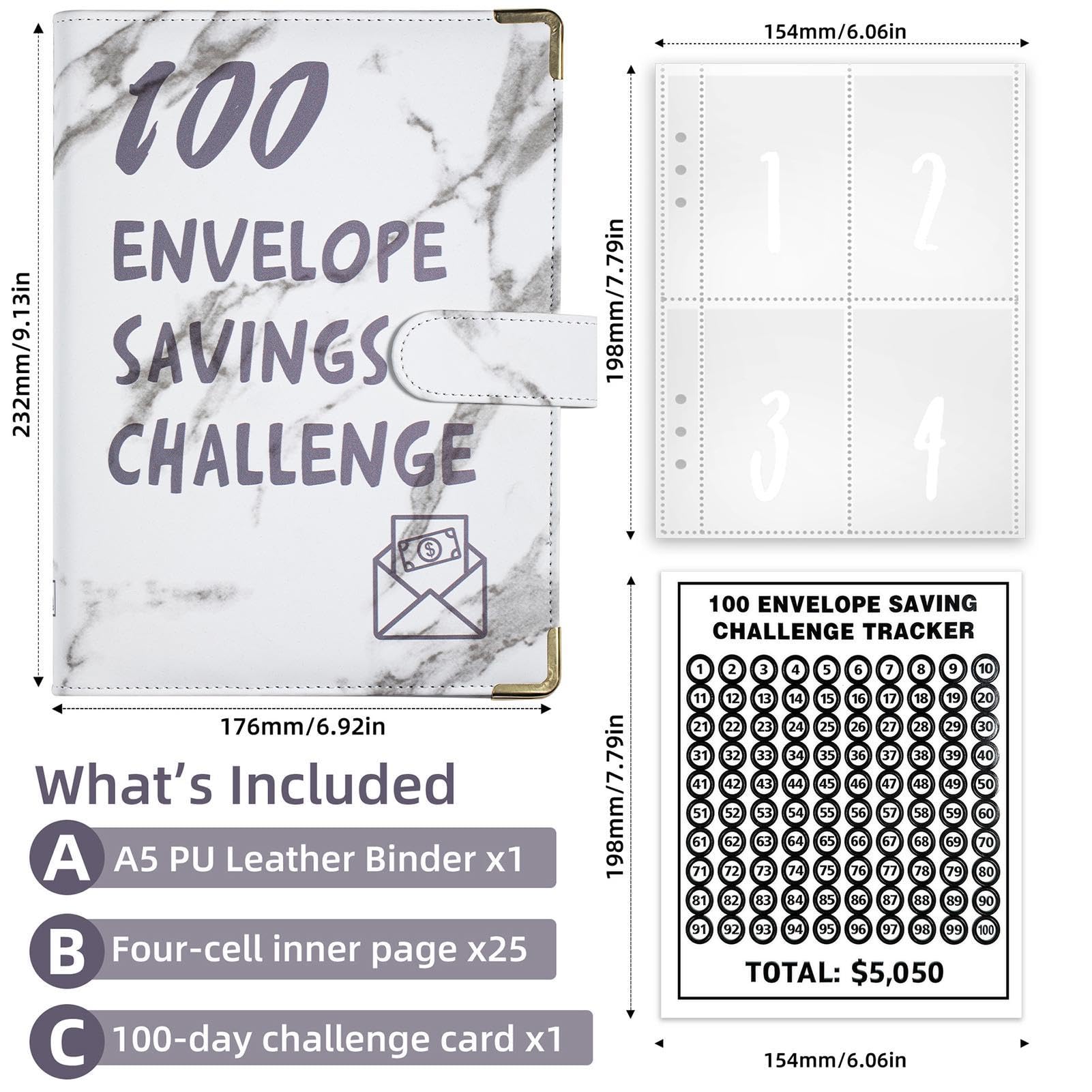 Willst du endlich mehr Geld sparen, aber weißt nicht wie? Mit diesem 12-Monats-Sparbuch wird's einfach und macht sogar Spaß! Der Binder hat 19x13,5 cm - handlich und passt in jede Tasche! Mit 6-Loch-Eisen-Clip für einfaches Einlegen und Entfernen der Seiten! Die PVC-Loseblätter sind wasserdicht, staubdicht und kratzfest - deine Ersparnisse sind sicher verwahrt! Du kannst das Buch als Sparbuch, Fotoalbum oder für Visitenkarten nutzen - super vielseitig! Jede Seite kann unterschiedliche Dinge speichern - einfach zu organisieren! Perfekt für die 2,5K/5K/10K Dollar Challenge oder eigene Sparziele! Das Einrahmungs-Design hilft dir, den Überblick zu behalten! Egal ob du für Urlaub, Auto oder Notgroschen sparen willst - mit diesem System siehst du deine Fortschritte! Also, wenn du disziplinierter sparen willst oder ein cleveres Geschenk suchst, ist dieser Budget-Binder perfekt! Du wirst staunen, wie schnell das Geld zusammenkommt!