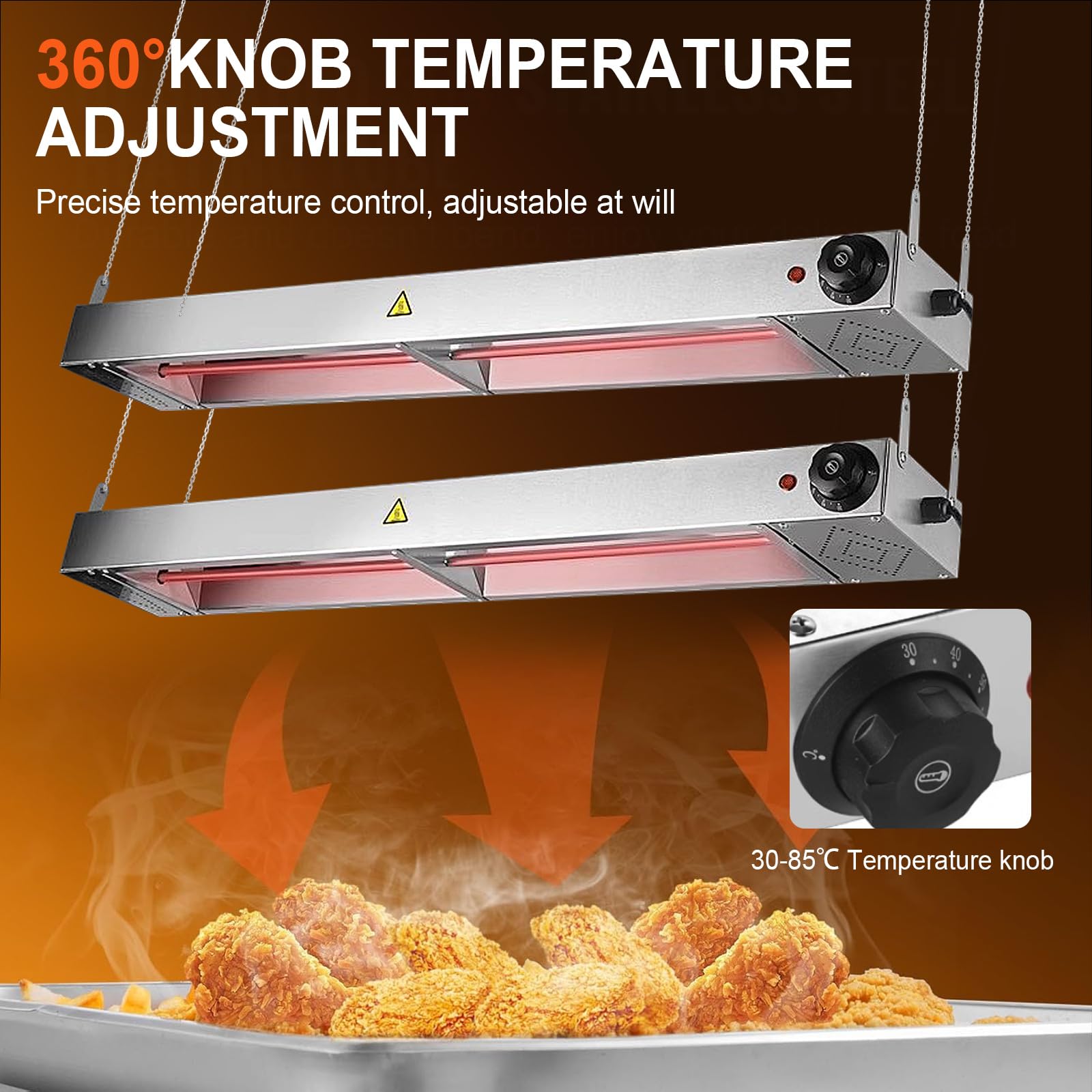 • ECUTEE Infrarot Speisenwärmer Mit 2 Wärmelampen - Höhenverstellbar Für Großküchen Und Catering