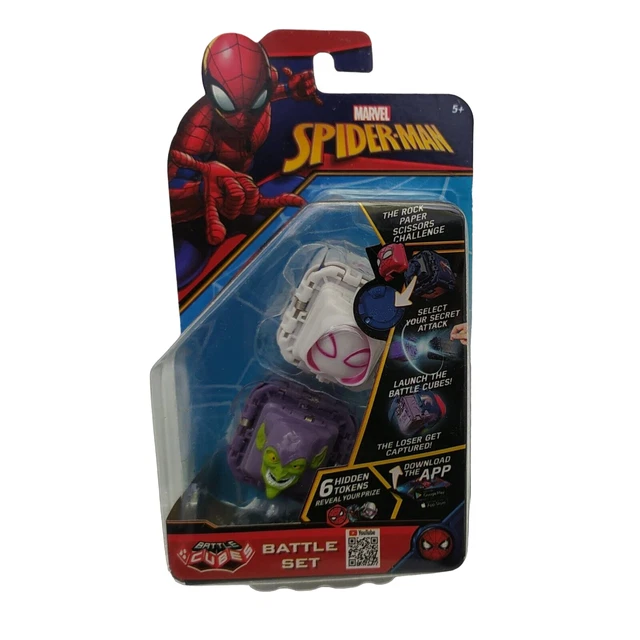 Alter, das ist ja mal mega! Mit diesen Spiderman Battle Cubes wird das gute alte Schere-Stein-Paper-Spiel richtig aufgemotzt. In diesem Set kämpfen Spider-Gwen gegen den fiesen Green Goblin - welcher Marvel-Held wird gewinnen? Einfach die Kopfverkleidung abnehmen, deine Wahl treffen (Schere, Stein oder Papier), den Kopf wieder aufsetzen und ab in den Battle! Der Sieger legt den Verlierer mit einem coolen Move flach. Perfekt für Spielenachmittage mit Freunden oder Geschwistern. Aber Vorsicht: Enthält kleine Teile und ist nicht für Kinder unter 3 Jahren geeignet! Die schwarze, mittelgroße Verpackung macht was her und das Spielprinzip ist supereinfach zu verstehen. Ob zu Hause, auf Reisen oder bei Freunden - die Battle Cubes passen in jeden Rucksack und sorgen für stundenlangen Spielspaß. Für alle Marvel-Fans ein absolutes Muss! Einfach auspacken und losbattlen - wer wird der Champion sein? Mit diesem interaktiven Spiel wird's garantiert nicht langweilig!