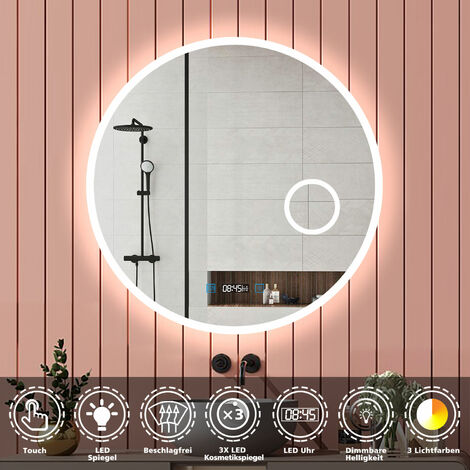 Stylish und smart! Dieser 60 cm runde LED-Spiegel von PESENXAN vereint modernes Design mit praktischen Funktionen. Die integrierte Digitaluhr im 24-Stunden-Format zeigt dir immer die aktuelle Zeit - perfekt für den stressfreien Start in den Tag. Mit 3 einstellbaren Lichtfarben (3000K Warmweiß, 4500K Natürlich, 6000K Kaltweiß) findest du für jede Situation das perfekte Licht - ob zum Schminken, Rasieren oder Entspannen. Die Anti-Beschlag-Funktion verhindert lästiges Beschlagen nach dem Duschen. Einfach per Touch-Schalter bedienen und zwischen Helligkeitsstufen wechseln. Der elegante schwarze Aluminiumrahmen passt super in Bad, Schlafzimmer oder sogar den Friseursalon. Einfache Montage mit deutscher Anleitung - inklusive allem nötigen Zubehör. Energiesparende LED-Technologie und Speicherfunktion für deine Lieblingseinstellungen. Mehr als nur ein Spiegel - ein echter Style- und Funktions-Boost für dein Zuhause!
