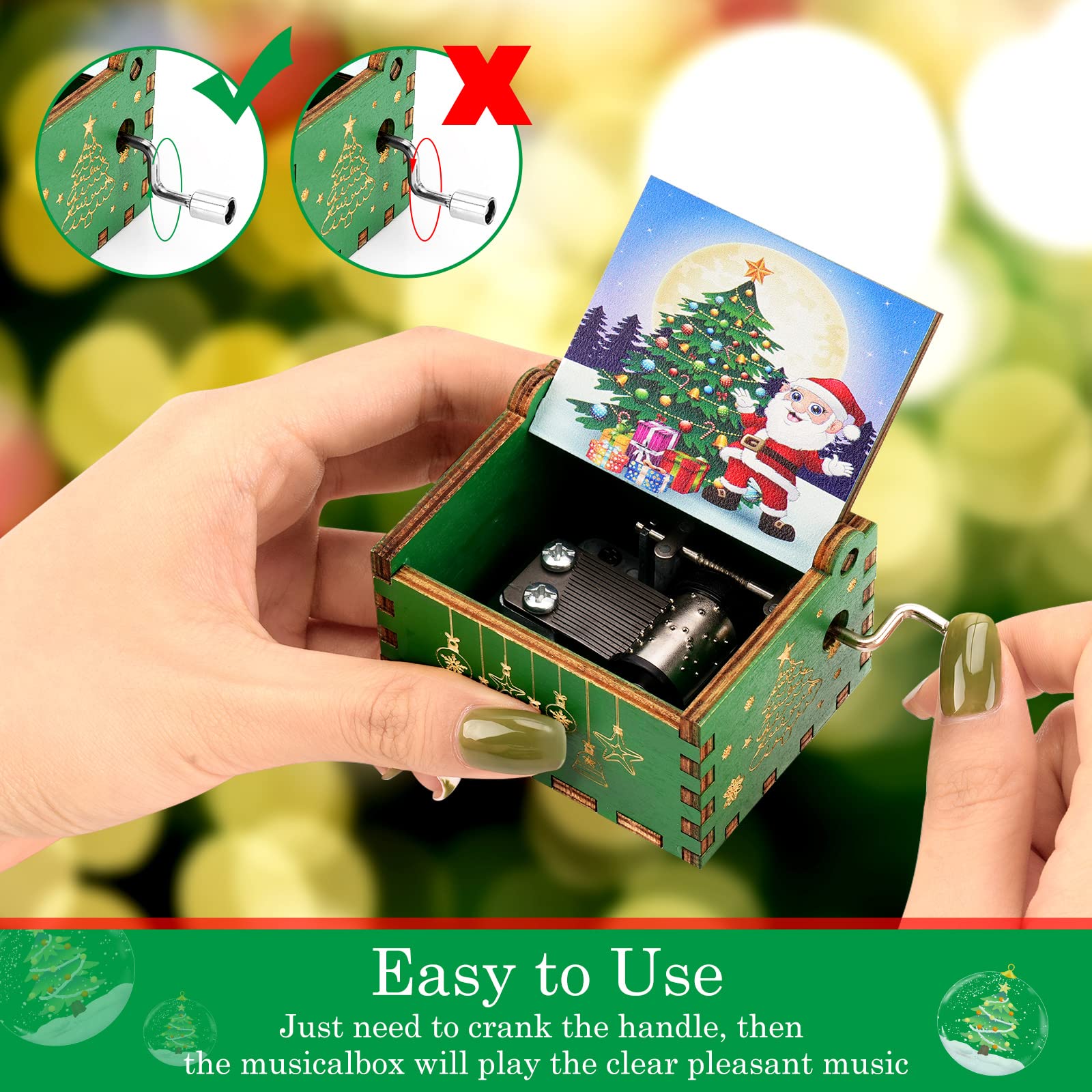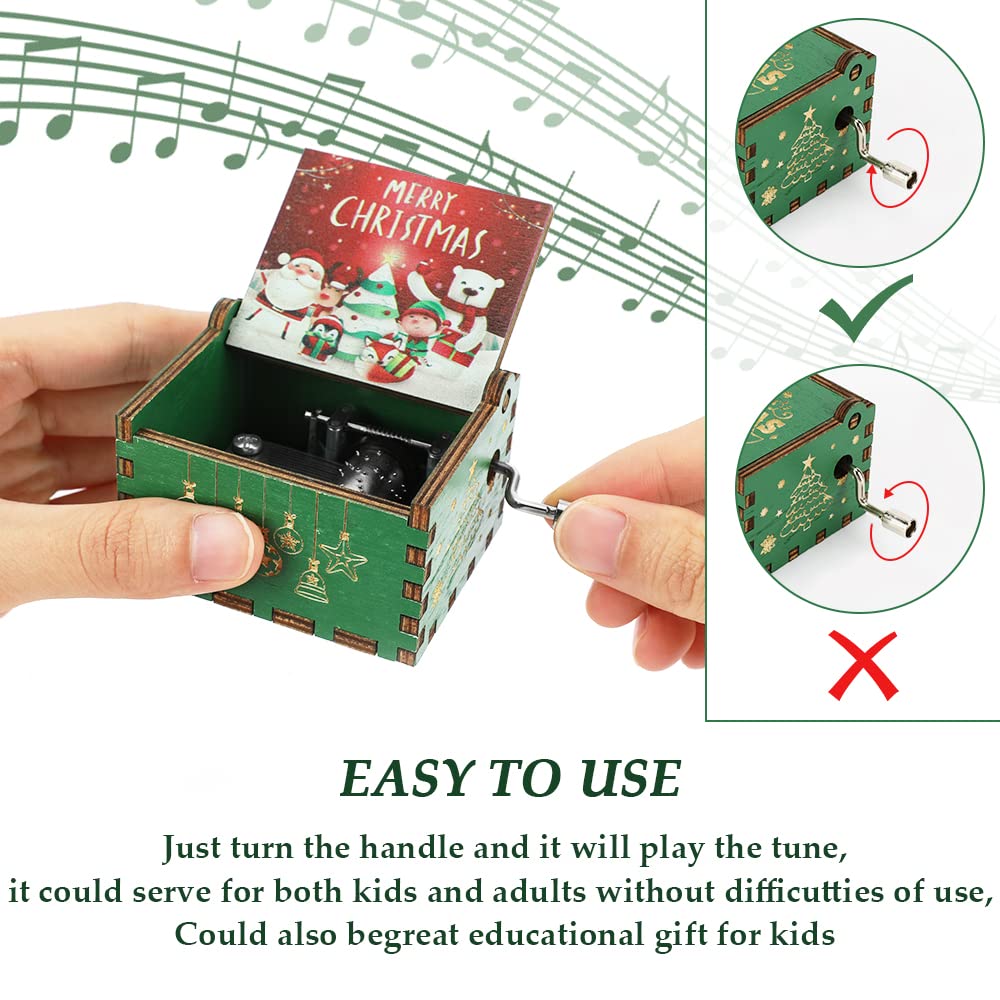 Oh, wie schön! Diese bezaubernde Spieluhr aus Holz bringt weihnachtliche Stimmung in dein Zuhause. Keine Batterien nötig - einfach die Handkurbel drehen und die festliche Melodie erklingt! Das Besondere: Du bestimmst das Tempo selbst - langsam für romantische Stimmung oder schneller für fröhliche Atmosphäre. Die feinen Holzschnitzereien mit Weihnachtsmotiven sind ein echter Hingucker. Nur 6,4x5,2x4,2cm klein, passt sie überall hin - auf den Kaminsims, den Weihnachtstisch oder ins Regal. Das dreischichtige Massivholz duftet herrlich natürlich und die Metallspielwerke erzeugen diesen unverwechselbaren, zarten Klang. Perfekt als Geschenk für Liebste, zur Dekoration für Weihnachtsfeiern oder einfach für dich selbst. Wenn du die Kurbel loslässt, stoppt die Musik - so einfach ist das! Hol dir dieses Stück Weihnachtszauber und lass dich von der Musik verzaubern!