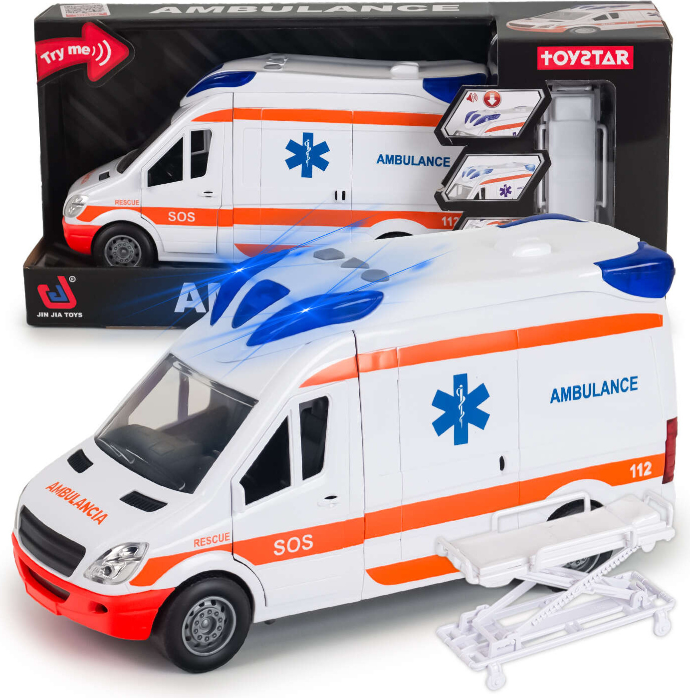 Einsatzbereit! Dieser supercoole Krankenwagen von Pasbuteiy bringt Rettungsaktionen direkt ins Kinderzimmer. Mit realistischen Licht- und Soundeffekten fühlen sich die Kleinen wie echte Rettungssanitäter. Aus stabilem PP-Material gefertigt, hält das Spielzeug auch rauerem Spielstand. Die Heckklappe und Türen lassen sich öffnen, sodass die verletzten Puppen sicher transportiert werden können. Mit ca. 27x10x14 cm ist der Krankenwagen genau die richtige Größe für kleine Hände. Das Spielzeug fördert nicht nur die Feinmotorik und Kreativität, sondern vermittelt auch spielerisch wichtige Werte wie Hilfsbereitschaft und Empathie. Perfekt für Rollenspiele alleine oder mit Freunden. (Batterien nicht im Lieferumfang enthalten - benötigt werden 2x AA). Ein tolles Geschenk für alle kleinen Nachwuchs-Ärzte und Rettungskräfte, die gerne Abenteuer erleben!
