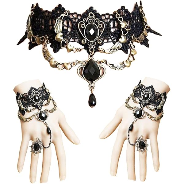 Ob zu Halloween, Karneval, einer Gothic-Party oder einfach im Alltag - dieser Schmuck setzt Akzente. Die Kombination aus schwarz und rot gibt dem ganzen einen vintage Touch, der richtig edel wirkt.