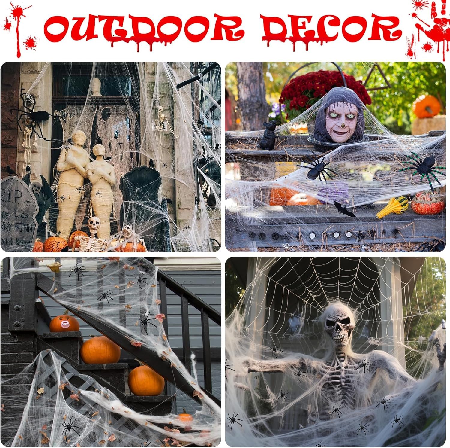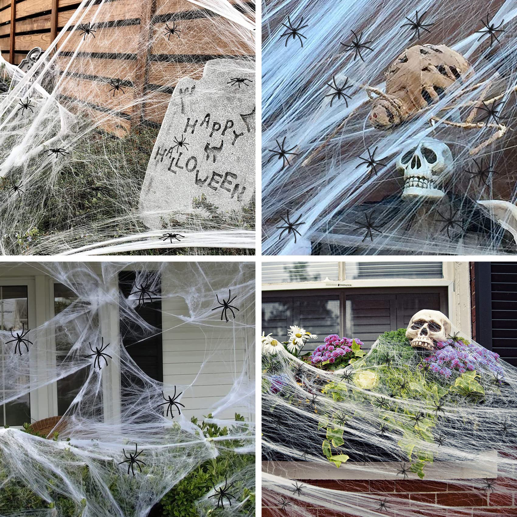 Die schwarzen Spinnen einfach ins Netz setzen - schon sieht's aus wie in einer echten Spinnenhöhle! Perfekt für Garten, Zaun, Hausfassade oder deine Halloween-Party. Nach Halloween einfach zusammenfalten und für nächstes Jahr aufbewahren. Damit wird dein Haus zum absoluten Horror-Hotspot - versprochen!
