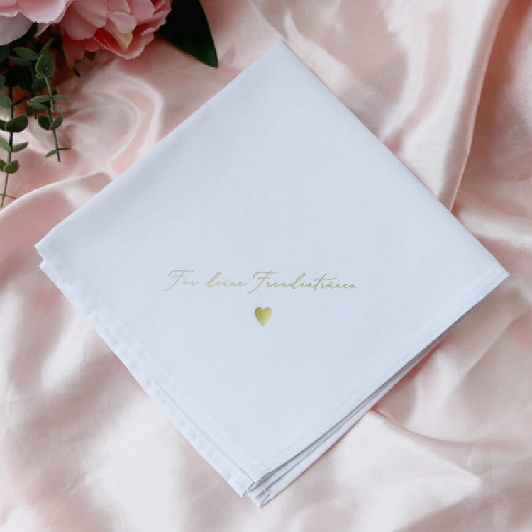 Tränen der Rührung bei der Hochzeit? Dieses wunderschöne bestickte Taschentuch fängt sie einfühlsam auf! Aus hochwertiger weißer Baumwolle mit zarter Spitzenverzierung an den Rändern. Mit 30x30cm großzügig geschnitten und mit romantischer Herzstickerei verziert. Perfekt als Gastgeschenk für Eltern, Brautjungfern oder Trauzeugen. Nach der Hochzeit kann es als gerahmtes Souvenir aufbewahrt werden - eine bleibende Erinnerung an den besonderen Tag. Viel schöner als Einweg-Papierhandtücher und absolut stilvoll!