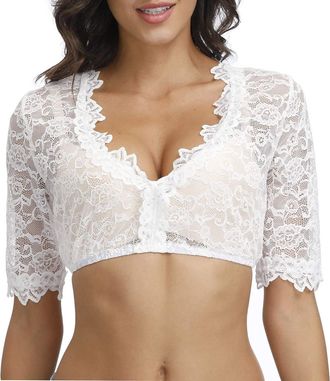 Servus! Diese Dirndlbluse ist der Hit fürs nächste Oktoberfest! Mit wunderschöner Vintage-Spitze am Ausschnitt und zarter Stickerei auf der Brust - da wirst du alle Blicke auf dich ziehen. Der V-Ausschnitt mit Stehkragen sitzt perfekt und betont deine Figur auf elegante Weise. Die langen Ärmel sind genau richtig für kühlere Festabende. Hinten sind praktische Knöpfe - an- und ausziehen ist damit kein Problem. Der Stoff? Hochwertige Spitze, die sich weich und angenehm auf der Haut anfühlt. Dehnbar, atmungsaktiv und leicht - da tanzt du die ganze Nacht durch! Es gibt verschiedene Größen von S bis 2XL - da findet jede die Passende. Ob zum Dirndl oder sogar zur Jeans - diese Bluse macht immer was her. Nicht nur fürs Oktoberfest super - auch für Hochzeiten, Feste oder einfach mal was Besonderes. Beim Waschen bitte kalt und schonend, dann bleibt sie lange schön. Mit dieser Bluse bist du die Königin des Wiesn!