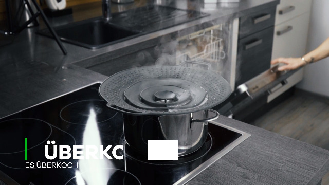 • Kochwerk RACHS Silikon Spritzschutz 30cm - 4-in-1 Küchenhelfer Als Dampfgarer, Abgießhilfe & Untersetzer