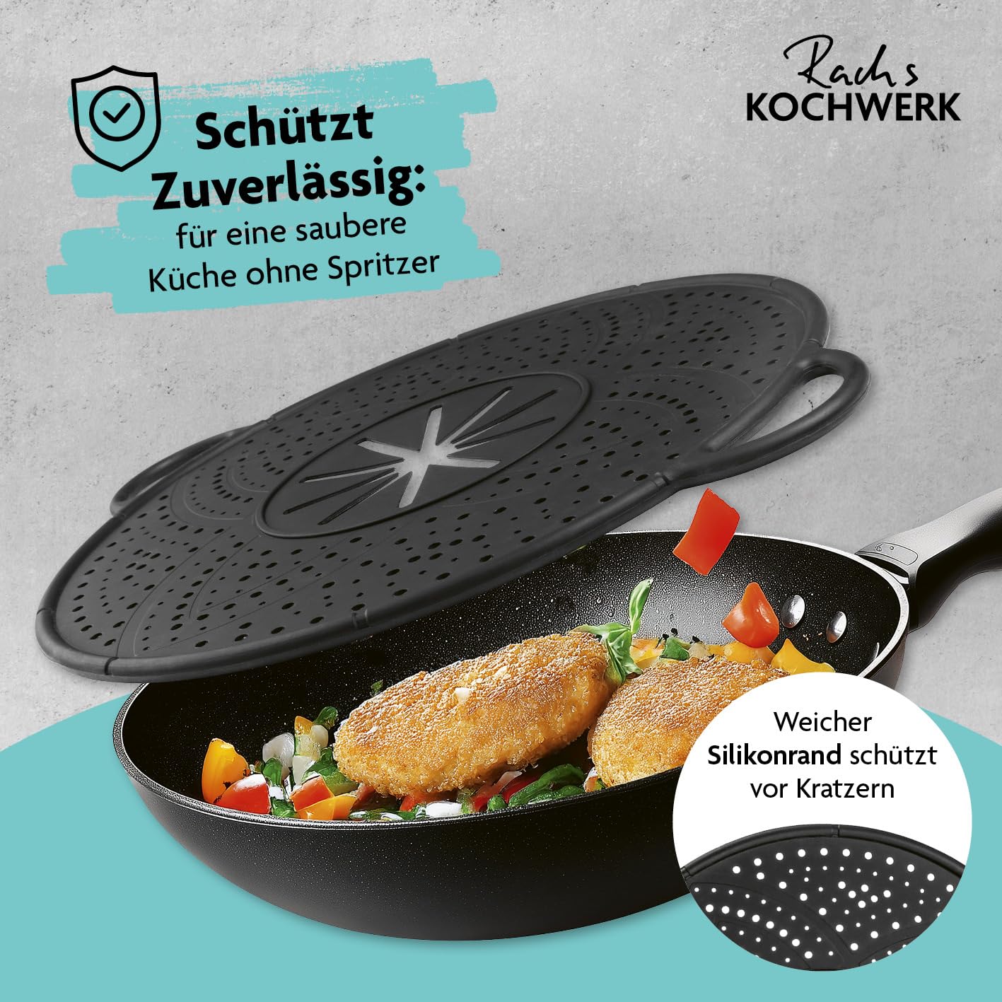 Kochwerk RACHS Silikon Spritzschutz 30cm - 4-in-1 Küchenhelfer Als Dampfgarer, Abgießhilfe & Untersetzer