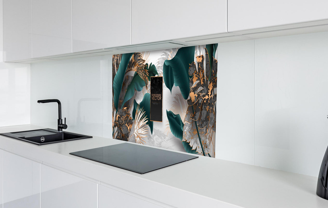 Schluss mit spritzenden Wänden! Dieser stylische Spritzschutz mit grünem Blatt-Muster schützt deine Küchenwand hinter Spüle und Herd vor Fett und Wasser. Aus robuster 3mm Aluverbundplatte - Made in Germany! Der UV-beständige Druck verblasst nicht, und die Oberfläche ist super einfach abzuwischen. Mit den mitgelieferten Klebepads ist die Montage ein Kinderspiel: einfach an die Wand drücken, und fertig. Sie deckt unschöne Fliesen oder Fugen komplett ab und gibt deiner Küche sofort einen frischen Look. Perfekt für alle, die keine Lust auf aufwändige Renovierung haben, aber trotzdem was Schickes wollen. Einfach, effektiv und sieht mega aus!
