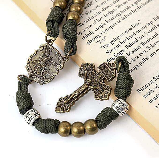 Dieser robuste Rosenkranz kombiniert traditionellen Glauben mit moderner Handwerkskunst! Die 10mm Bronzeperlen sind aus hochwertiger Legierung gefertigt und auf starkem grünem Paracord aufgezogen. Besonders schön: Die St. Michael-Medaille als Schutzsymbol und das 1,7 Zoll große Jesus-Pardon-Kruzifix. Das Paracord ist nicht nur extrem reißfest, sondern sieht auch noch richtig gut aus. Die antike Bronze-Oberfläche ist korrosionsgeschützt und hält jahrelang. Perfekt für unterwegs, auf Reisen oder als täglicher Begleiter im Gebet. Ein wunderbares Geschenk für Kommunion, Firmung oder einfach als Zeichen des Glaubens. Dieser Rosenkranz übersteht so einiges und wird mit der Zeit noch schöner!