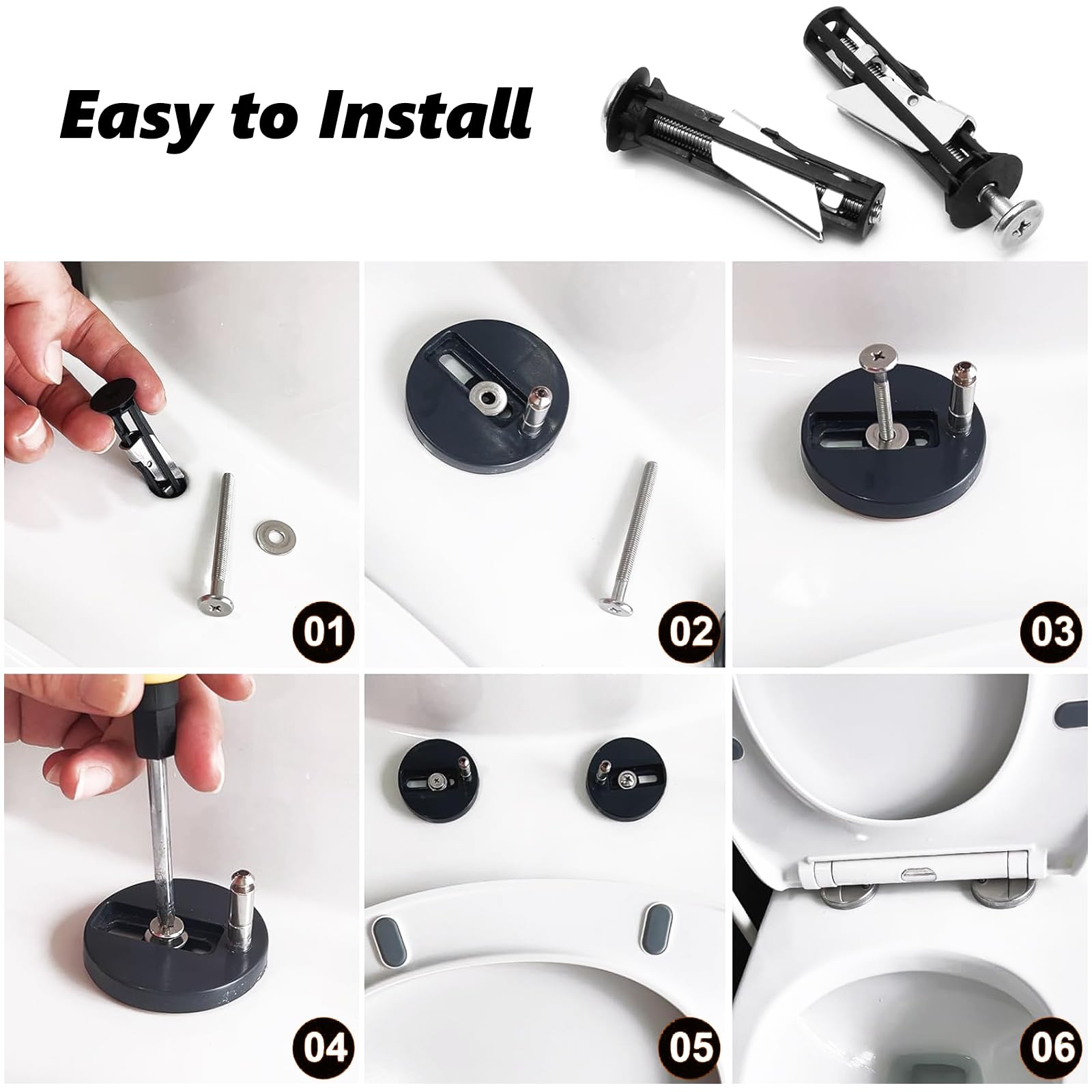 Endlich wieder ein fester Sitz für deine Toilette! Dieser praktische Schraubensatz macht die Montage deines Toilettendeckels zum Kinderspiel. Aus rostfreiem Edelstahl gefertigt - das bedeutet: keine Rostflecken mehr und maximale Langlebigkeit. Die Schrauben haben eine Länge von 5,5 cm und passen für Löcher mit 14-20 mm Durchmesser. Super einfach zu installieren: Du brauchst nur einen Schraubendreher oder kannst sie sogar von Hand festziehen. Im Lieferumfang sind 2 komplette Sets enthalten - jeweils mit Kunststoffbolzen, Unterlegscheiben und Muttern. Nie wieder wackelige Toilettensitze! Perfekt als Ersatz für kaputte oder verlorene Schrauben. Ein echter Lifehack für jeden Haushalt!