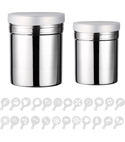 Bäckermeister aufgepasst! Diese Edelstahl-Streuer sind perfekt fürs Backen und Kochen. Aus lebensmittelechtem Edelstahl - rostfrei, geruchlos und super langlebig. Das feinmaschige Sieb oben verteilt Puderzucker, Kakao oder Zimt gleichmäßig und hauchdünn. Die durchsichtige ABS-Abdeckung hält die Feuchtigkeit raus - das Pulver bleibt schön trocken. Maße: 5,5 x 8 cm, Fassungsvermögen 6 Unzen. Einfach zu reinigen - mit Wasser abspülen (nicht in Spülmaschine!). Ideal für Café, Bäckerei oder daheim. Damit werden Kuchen, Cappuccino und Desserts zum professionellen Hingucker. Einfach befüllen, schütteln und genießen!